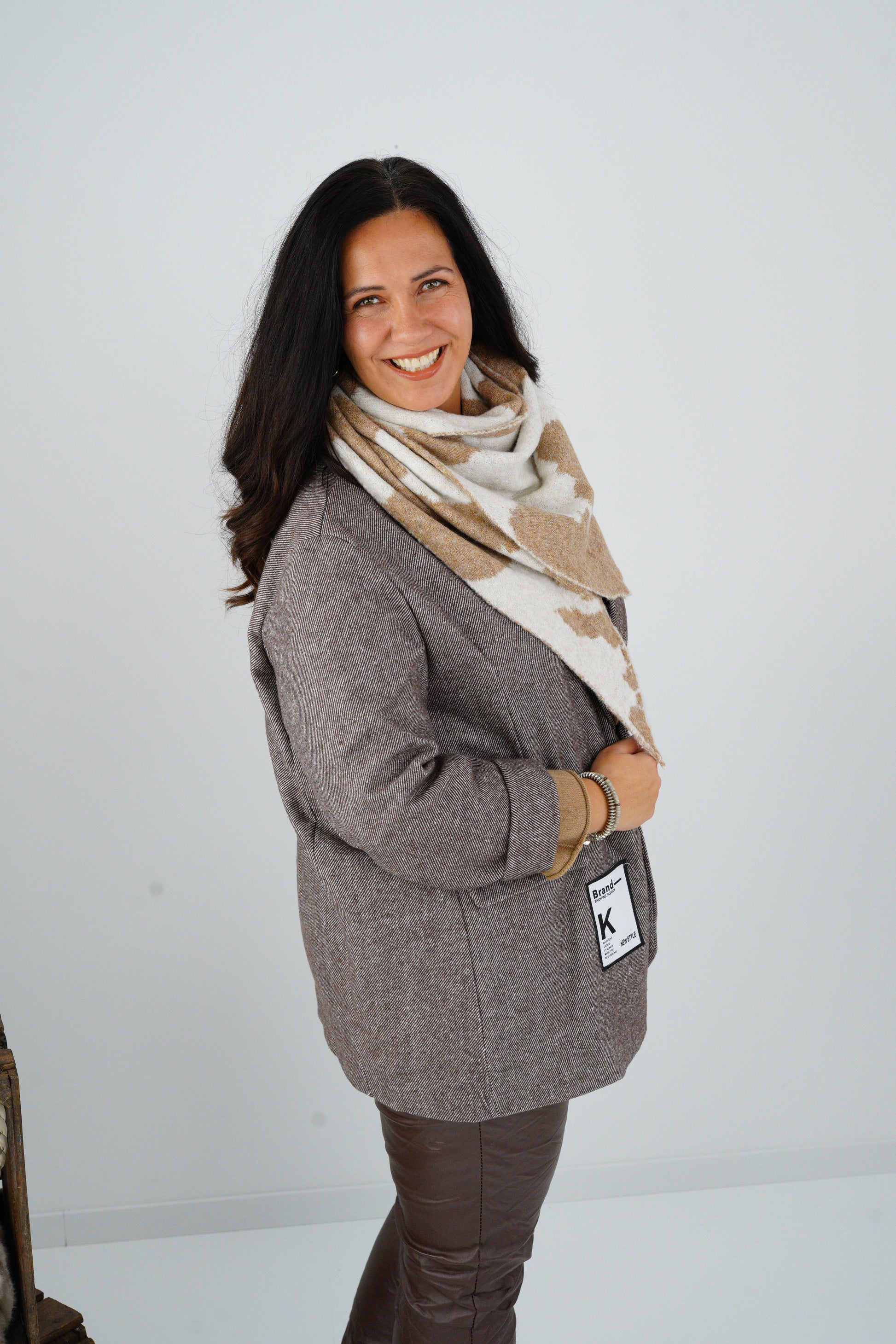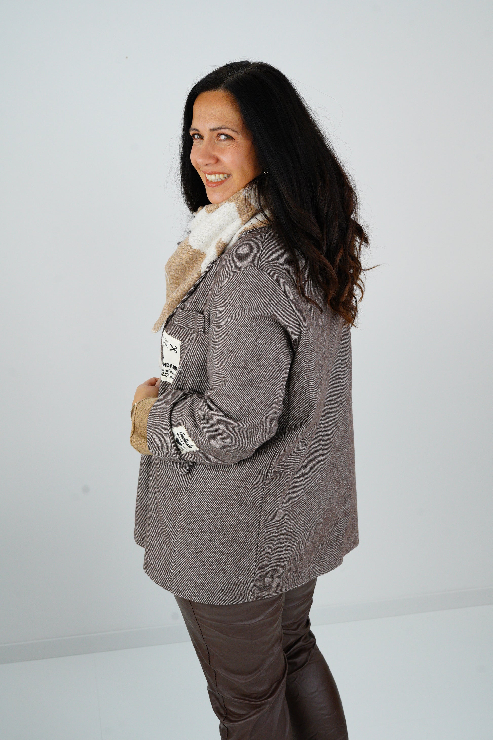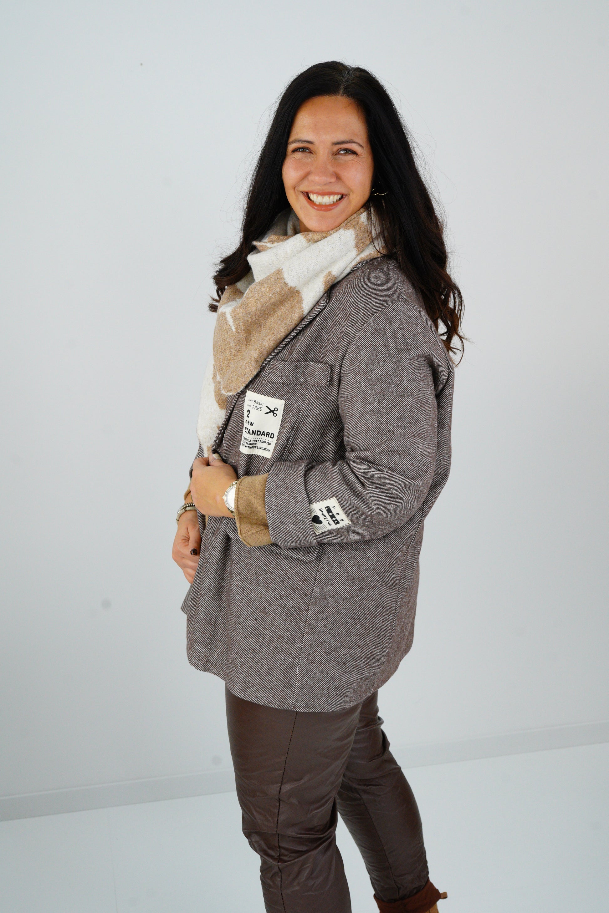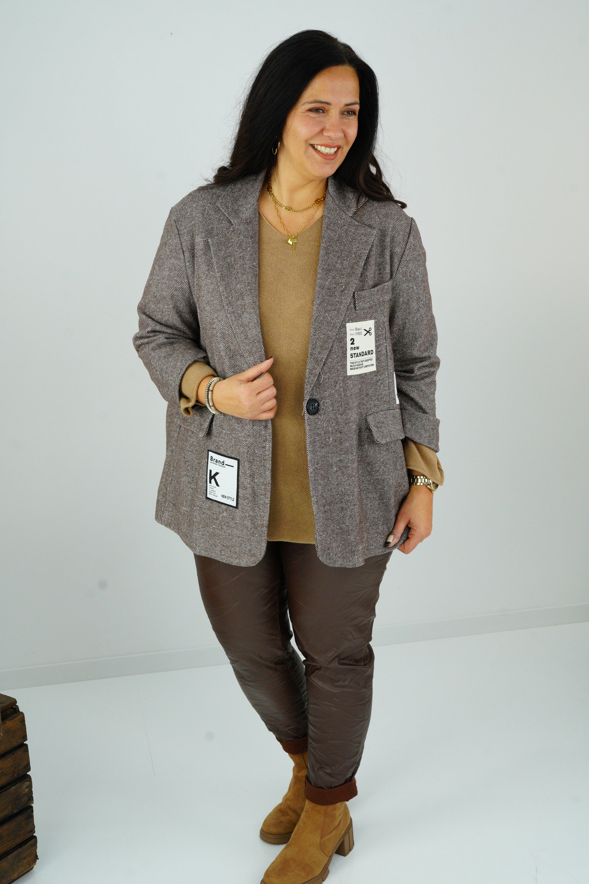 Dieser Blazer überzeugt mit seinem eleganten Schnitt und dem strukturierten Stoff – ein echter Hingucker für Business oder Alltag. Der warme Schokoton lässt sich vielseitig kombinieren und wirkt besonders hochwertig.