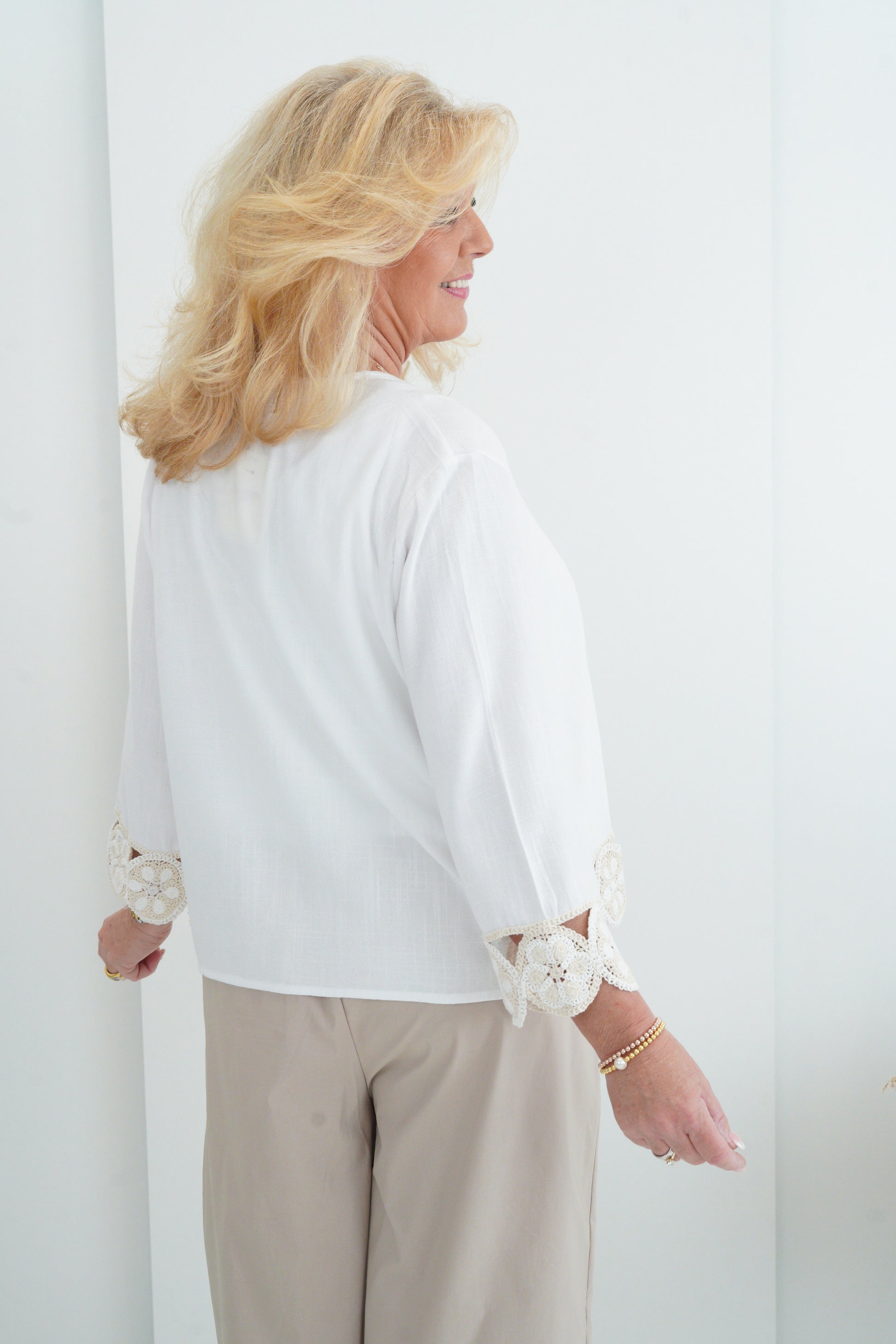 Saum mit zweifarbiger Häkelspitze als modisches Detail