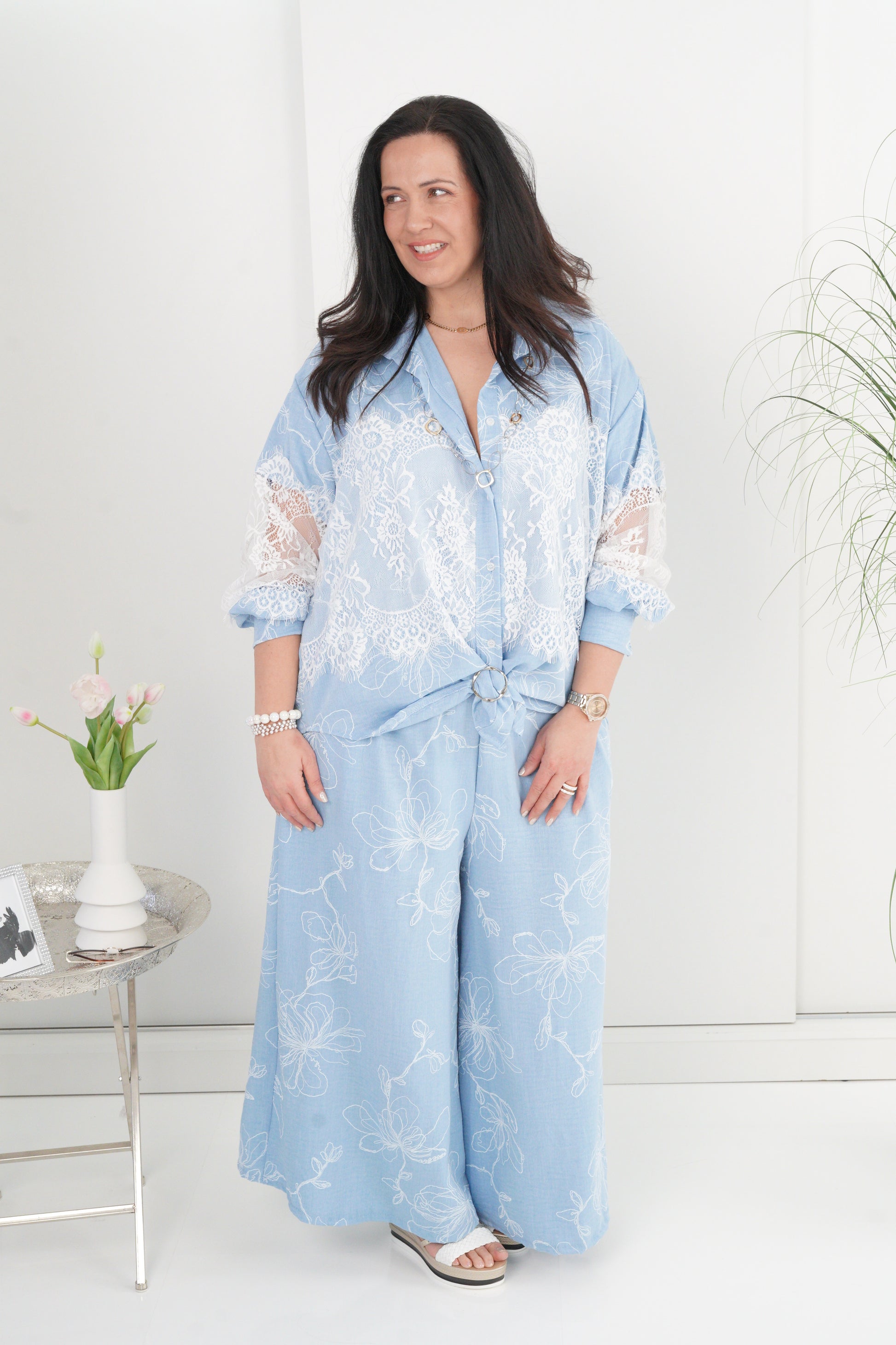 Spitzenshirt in Leo Blau-Lindgrün (38-42)