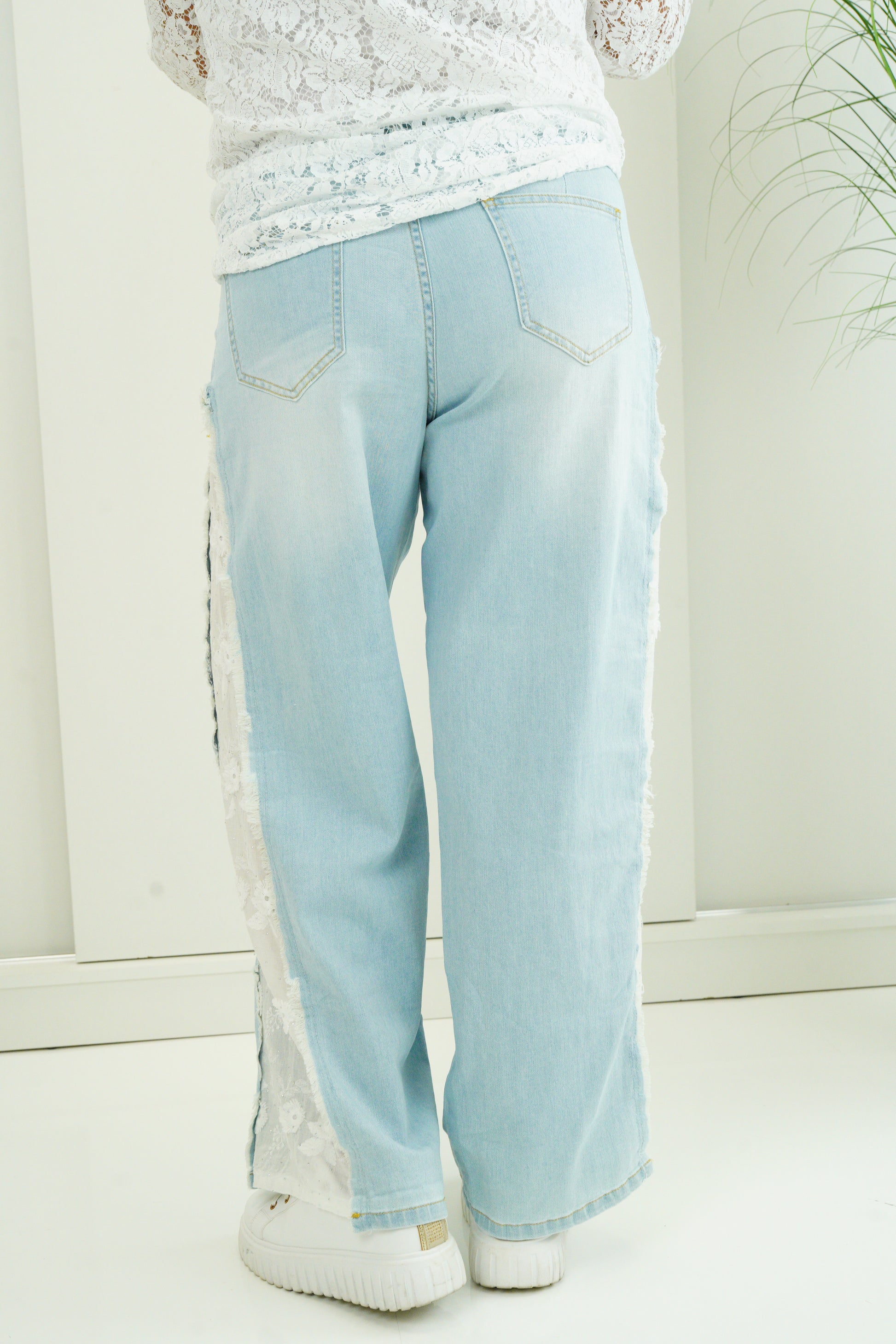 Diese Jeans verbindet modisches Design mit hohem Tragekomfort und einer außergewöhnlichen Optik. Der Kontrast aus Light Blue und Weiß wirkt frisch und modern, während die dekorativen Seiteneinsätze der Hose einen exklusiven Charakter verleihen. Ideal für stilvolle Alltagslooks oder besondere Anlässe – bequem, trendbewusst und mit viel Liebe zum Detail gestaltet.
