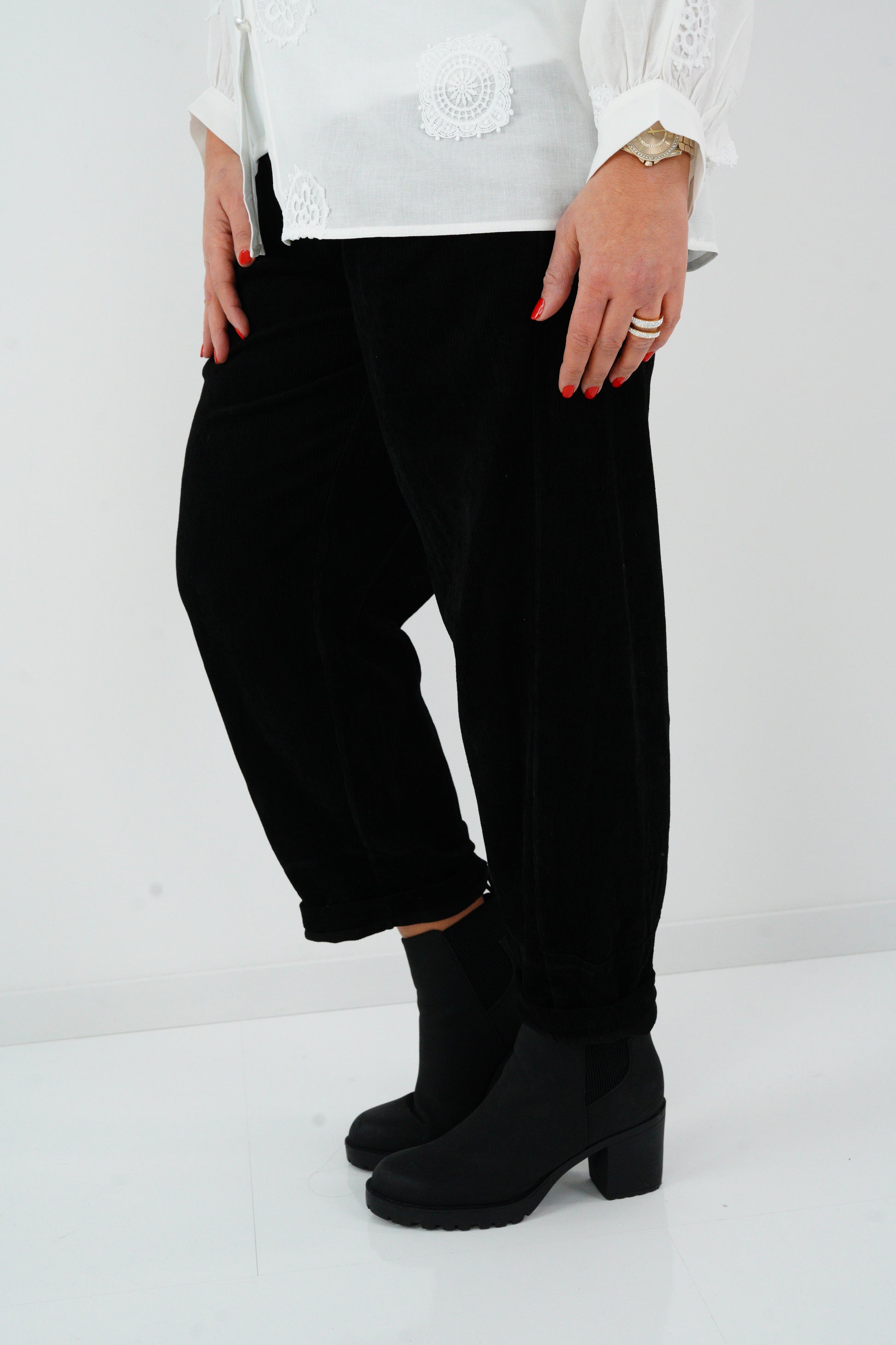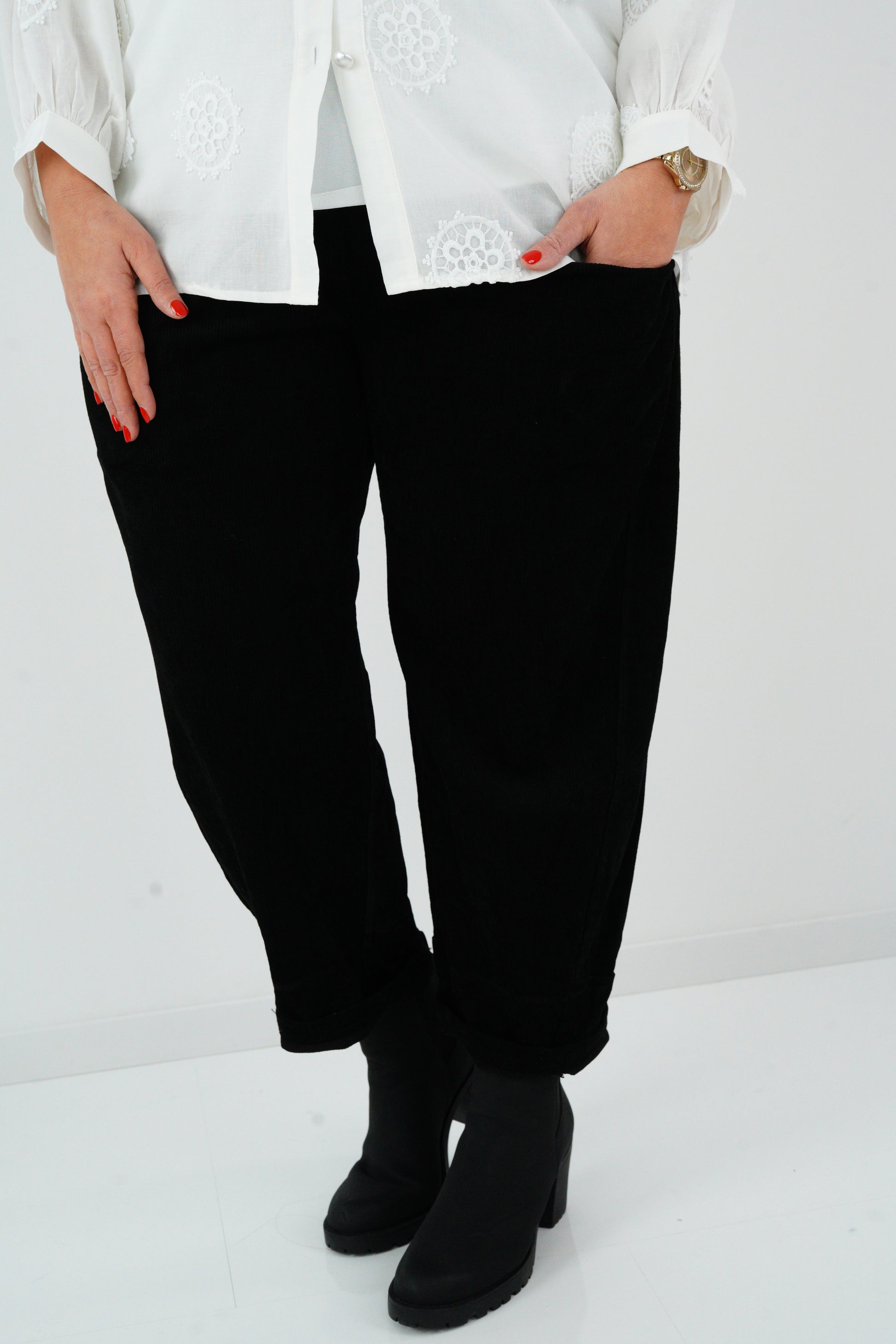 Diese Joggpant vereint gemütliche Lässigkeit mit einer eleganten Note: Die feine Cordstruktur verleiht dem Modell Tiefe und Stil, während der elastische Bund und der Ziergürtel für hohen Tragekomfort sorgen. Ideal für den Alltag, das Büro oder schick kombiniert für den Abend – ein Must-have für stilbewusste Frauen, die Bequemlichkeit und Mode vereinen möchten.