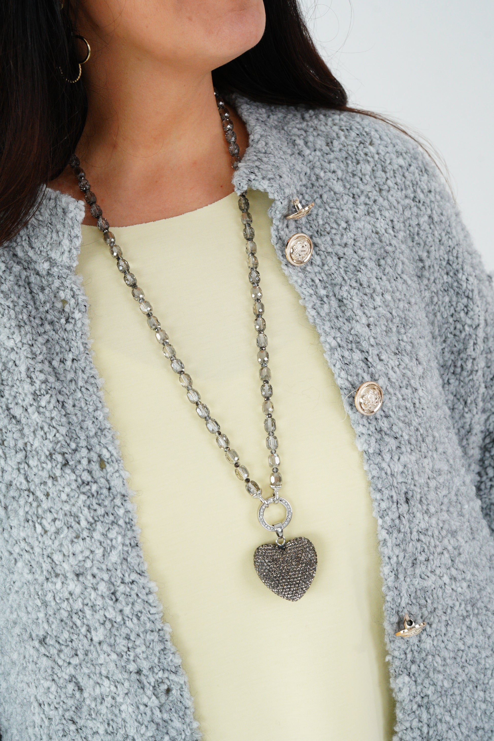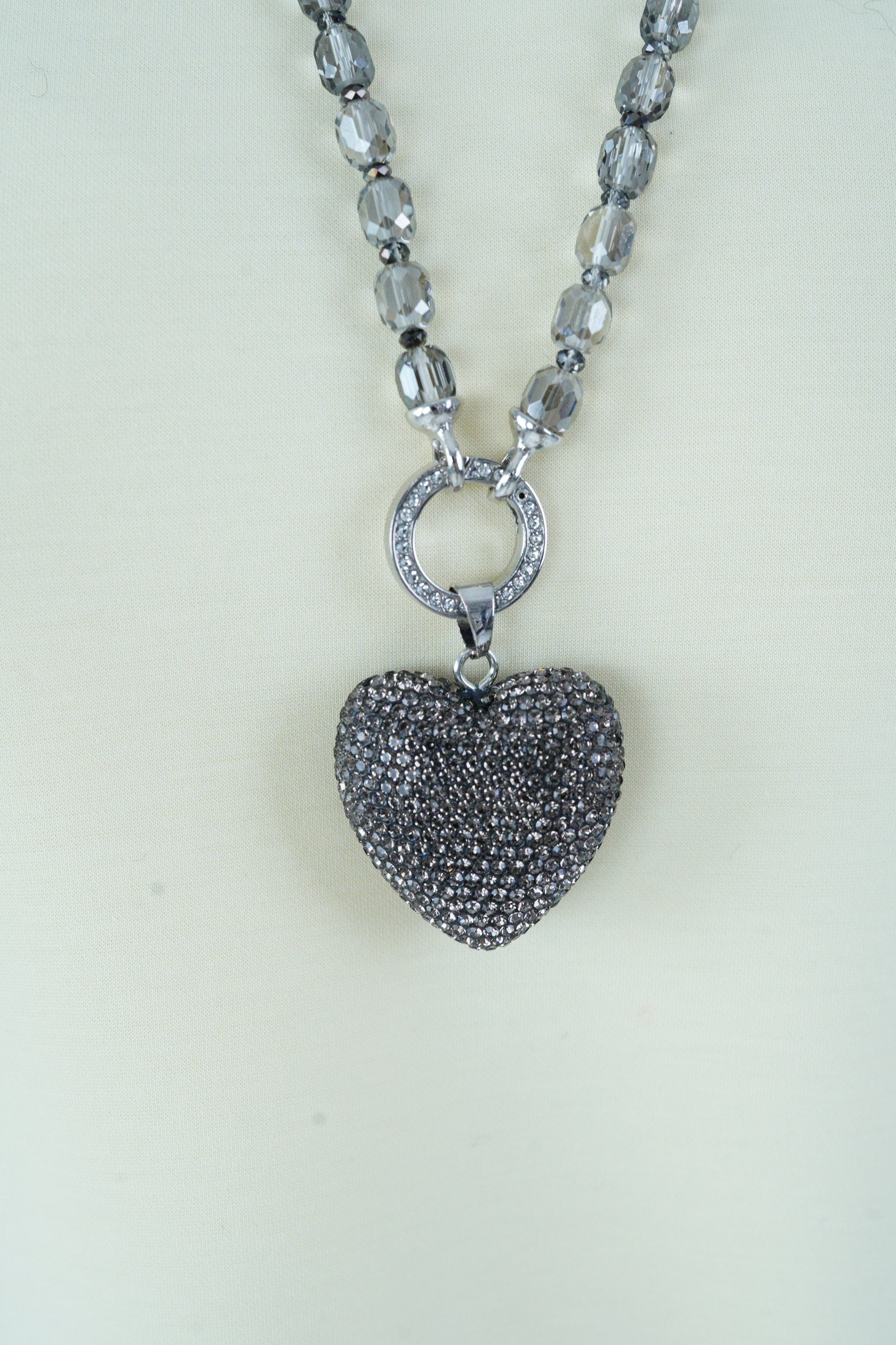 Kette in Anthrazit-Grau mit Herzanhänger (Länge 85 cm)