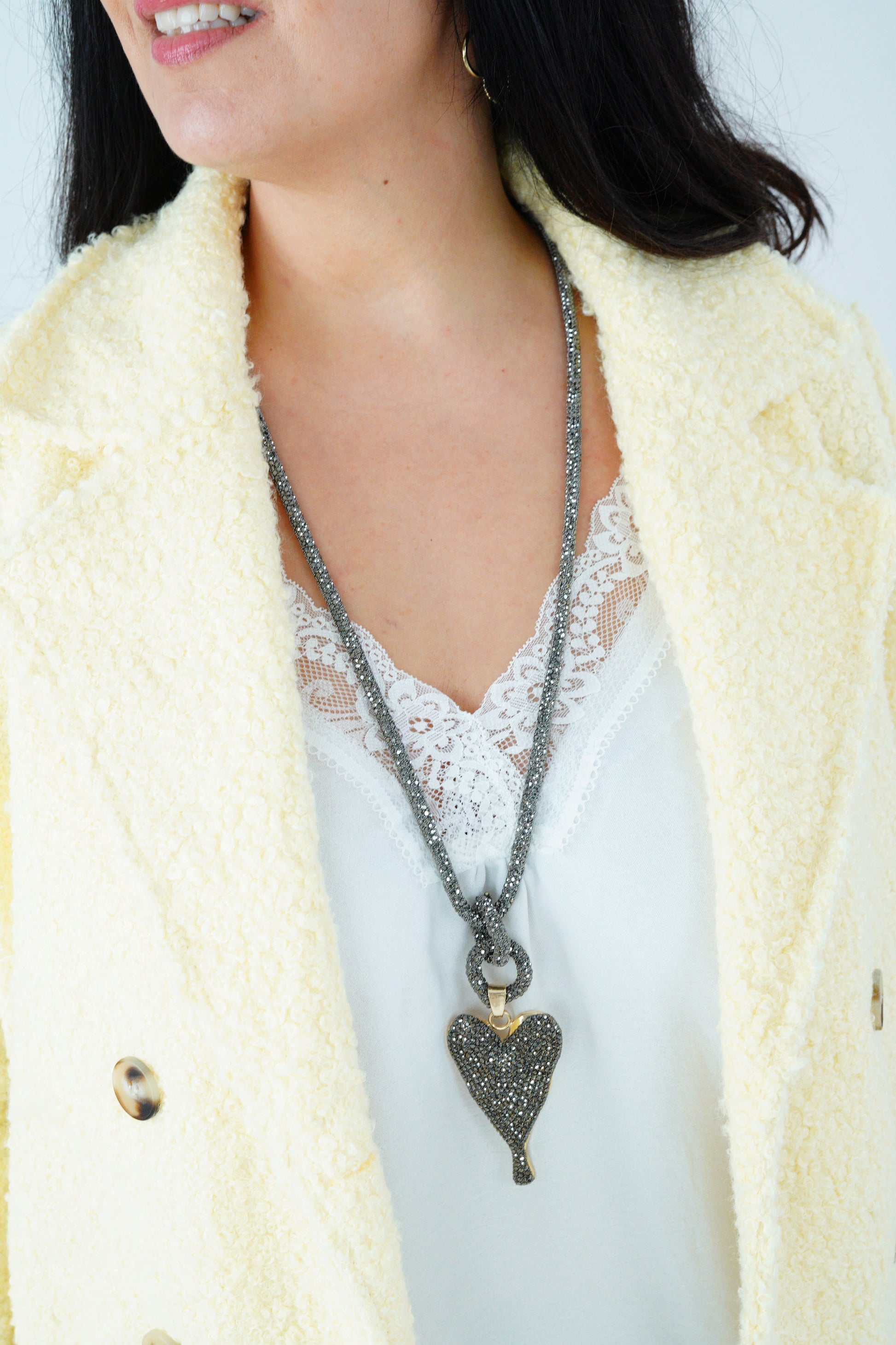 Kette mit Herzanhänger in Anthrazit-Gold (Länge 80 cm)