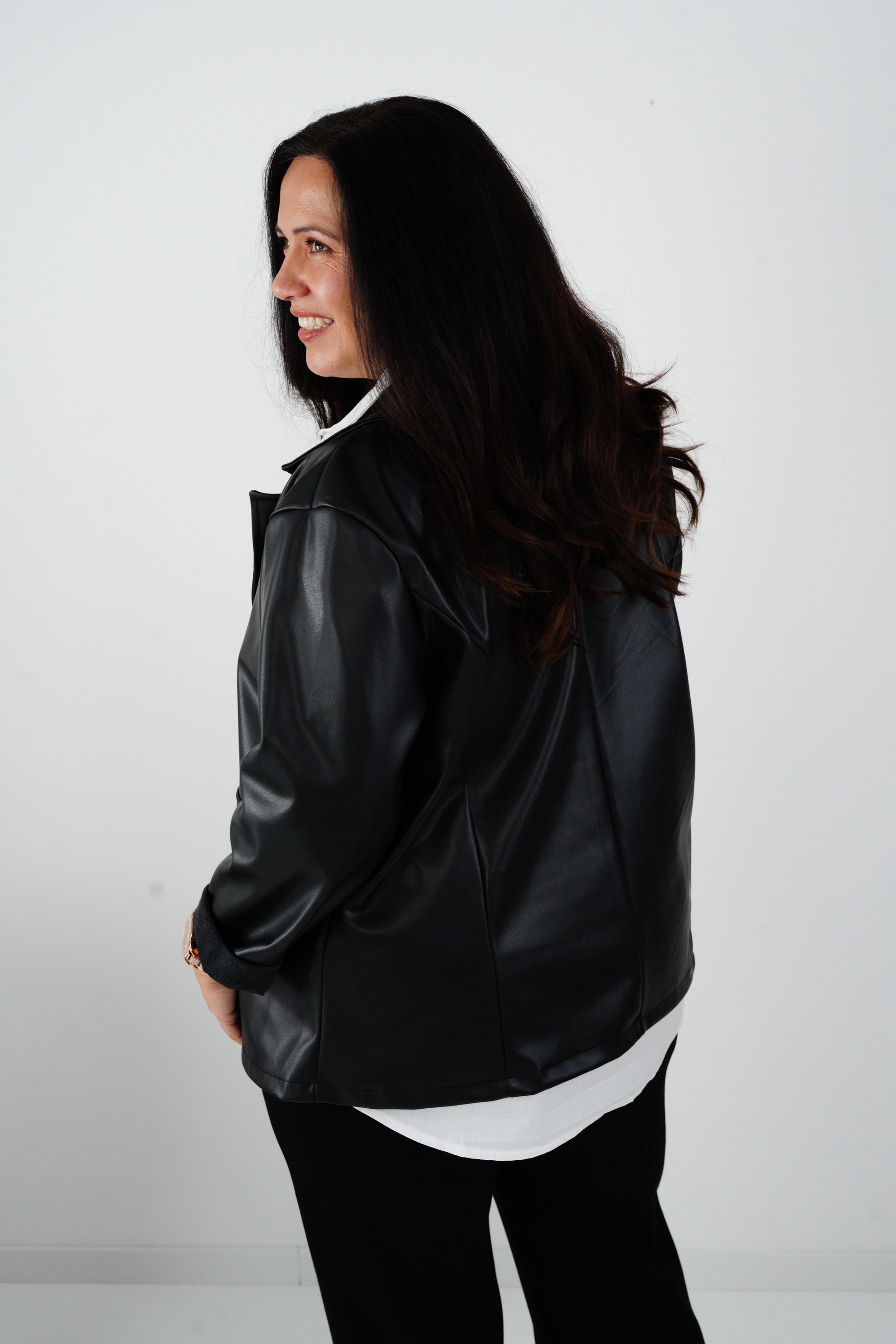 Ein stilvoller Kunstleder-Blazer in warmer Bordeauxfarbe – perfekt für moderne Everyday-Looks oder elegante Abend-Styles. Das weiche Material mit Stretchanteil sorgt für angenehmen Tragekomfort bei gleichzeitig edler Optik. Kombiniert mit Jeans oder Stoffhose ein echter Hingucker!