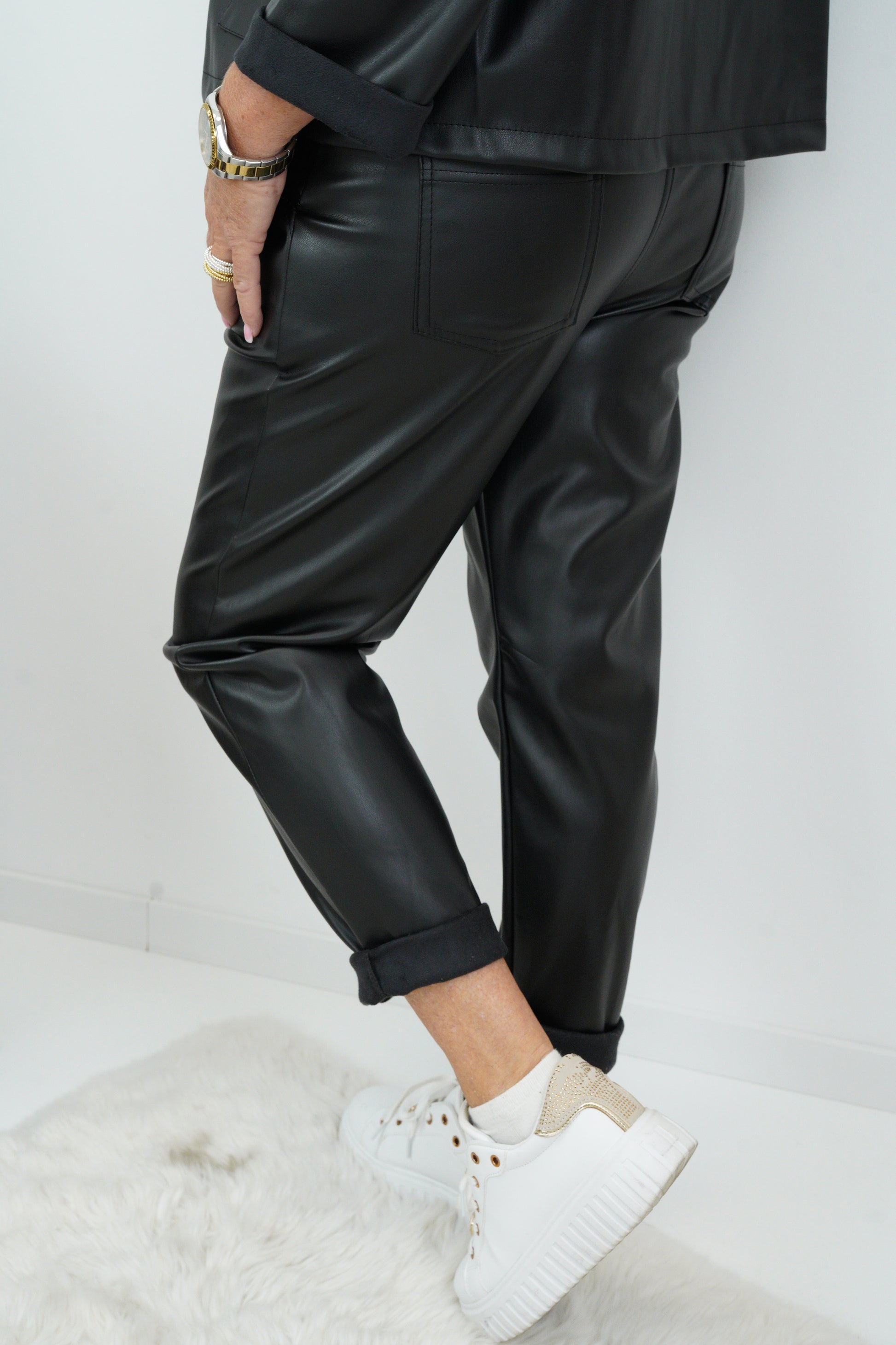 Kunstleder-Joggpant in Schwarz (38–42+)