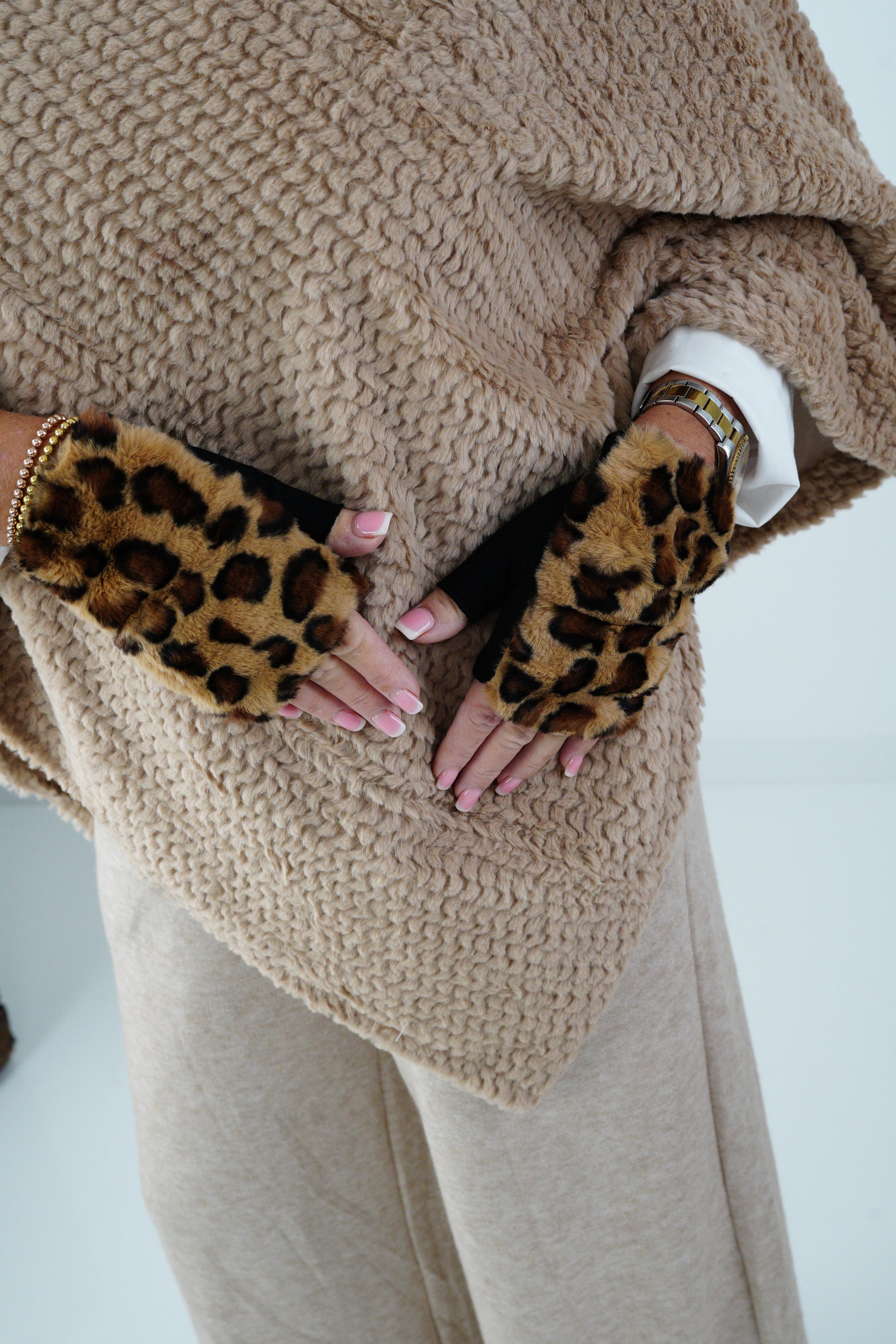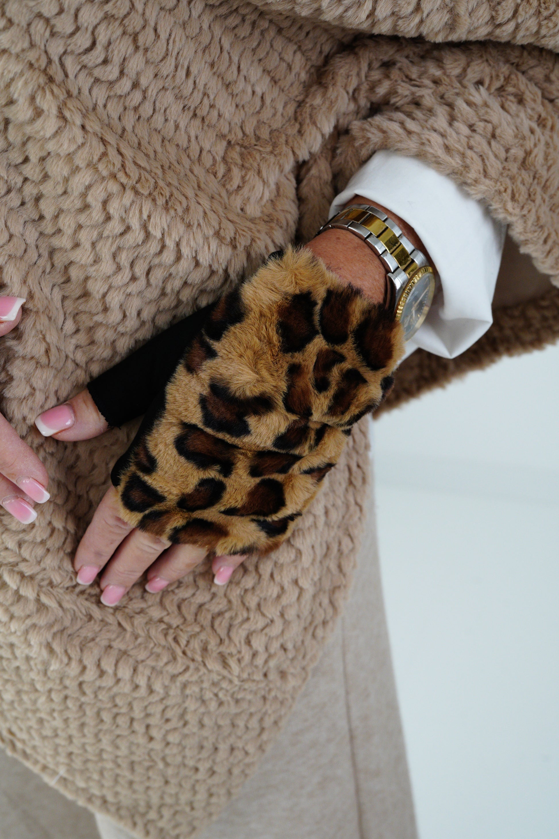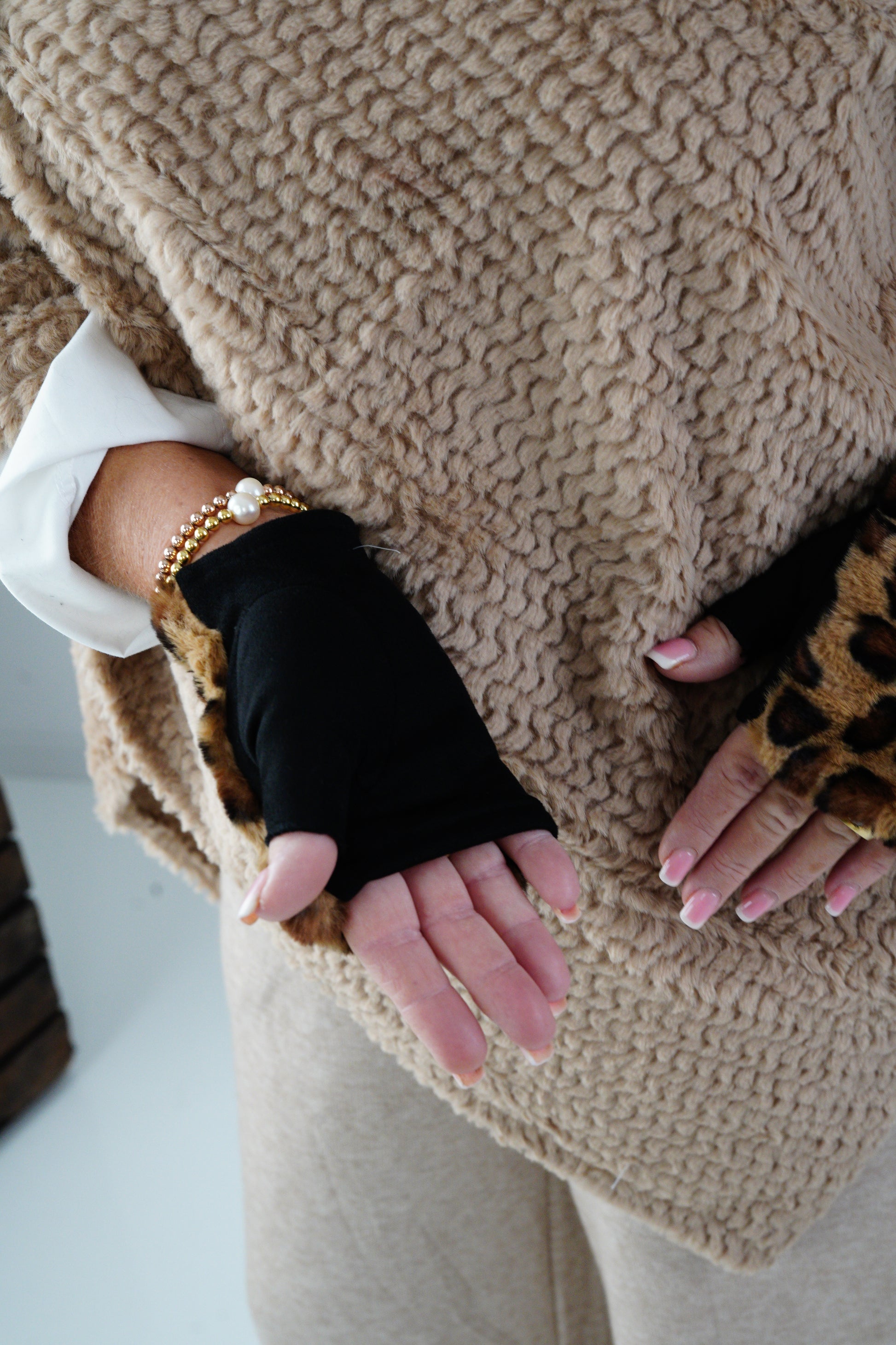 Stylisch & funktional – die kurzen Handstulpen im angesagten Leo-Look halten nicht nur warm, sondern setzen auch ein modisches Statement. Perfekt für kalte Tage oder als stylisches Accessoire.