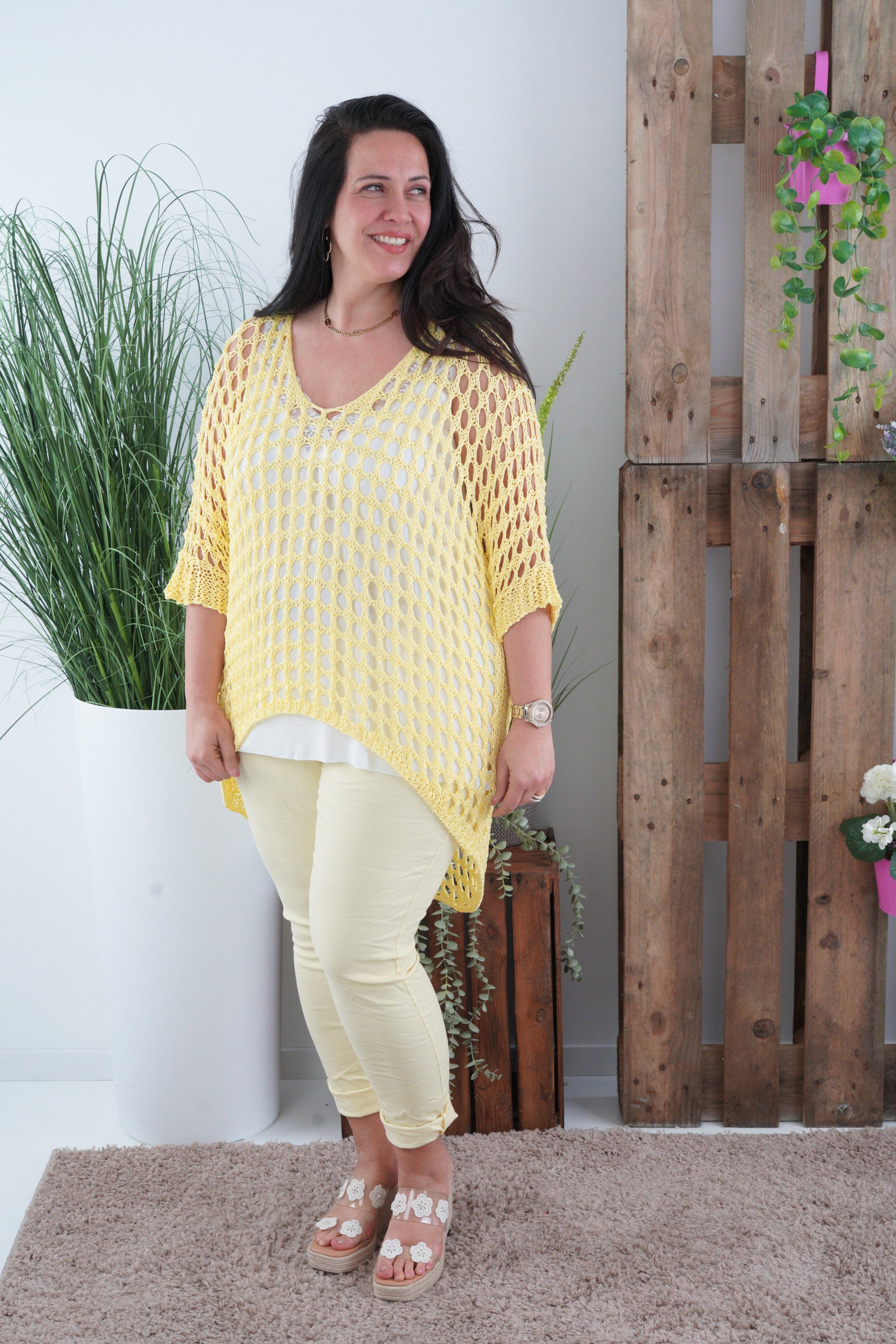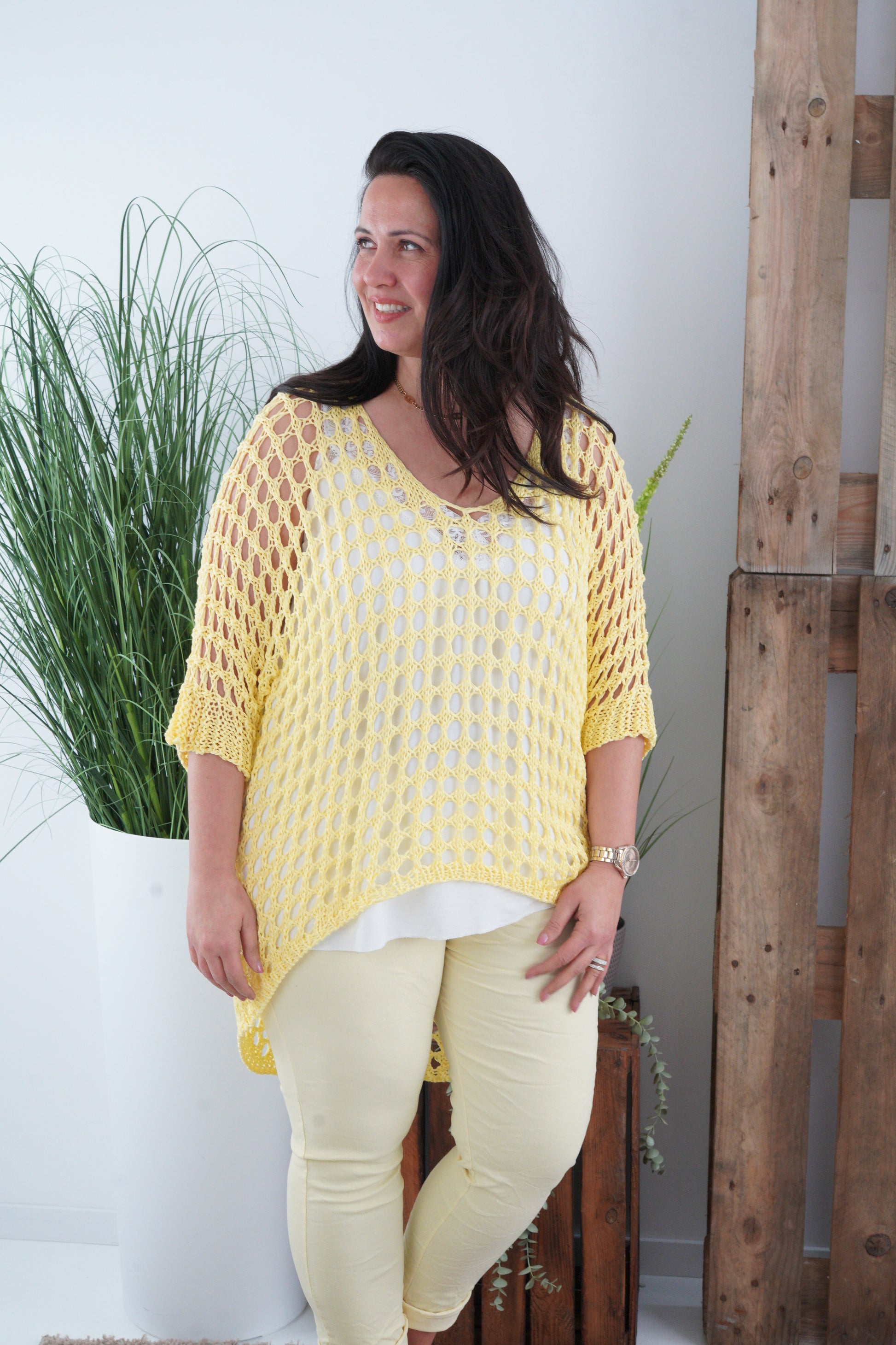 Loch-Pullover in Gelb (40–44)