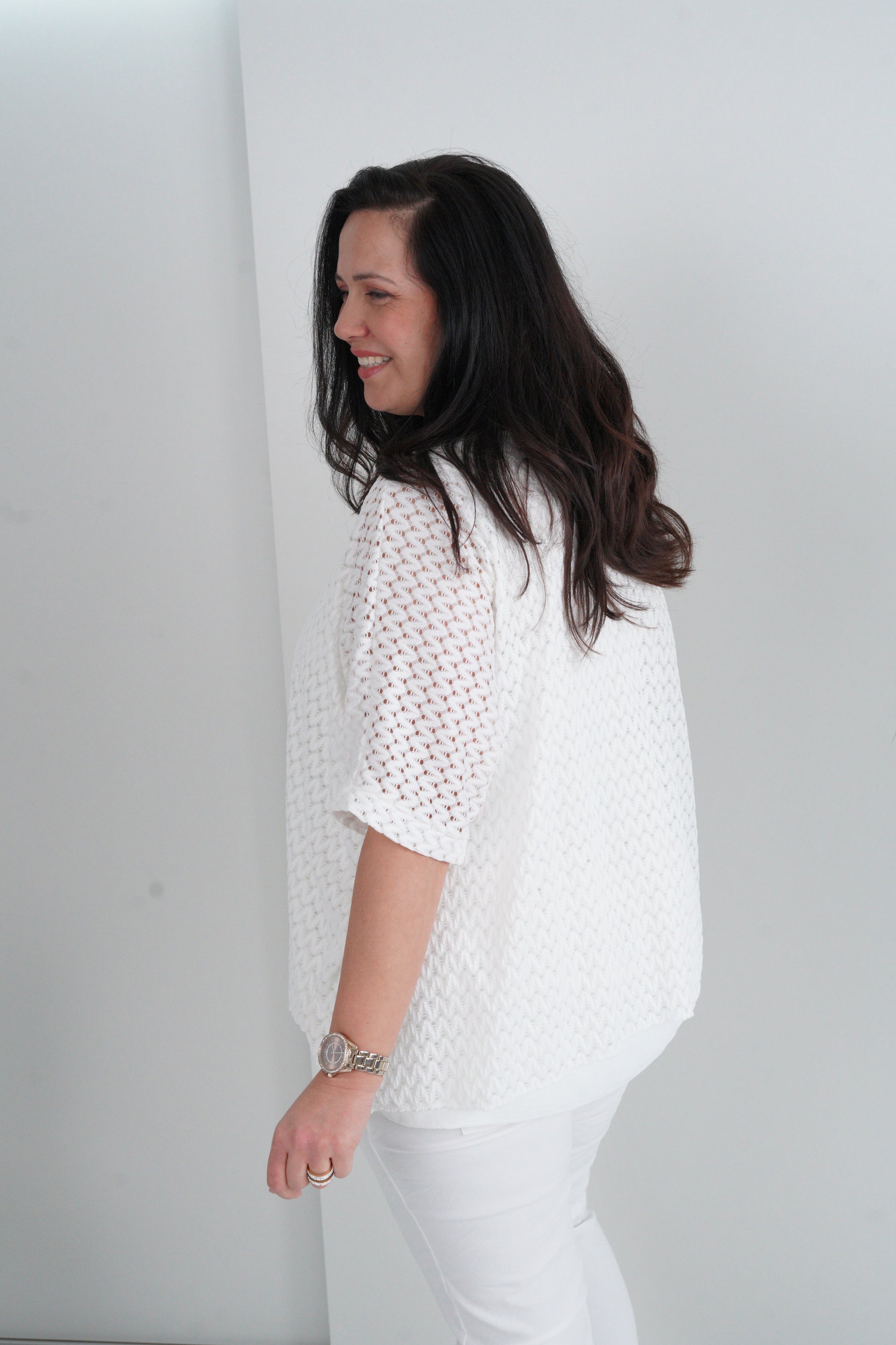 Der weiche Viskosemix sorgt für hohen Tragekomfort und einen fließenden Fall. Durch das dekorative Lochmuster wirkt das Shirt besonders leicht und sommerlich und lässt sich ideal zu Jeans, Stoffhosen oder auch zu lässigen Joggpants kombinieren – perfekt für entspannte und stilvolle Looks. ✨