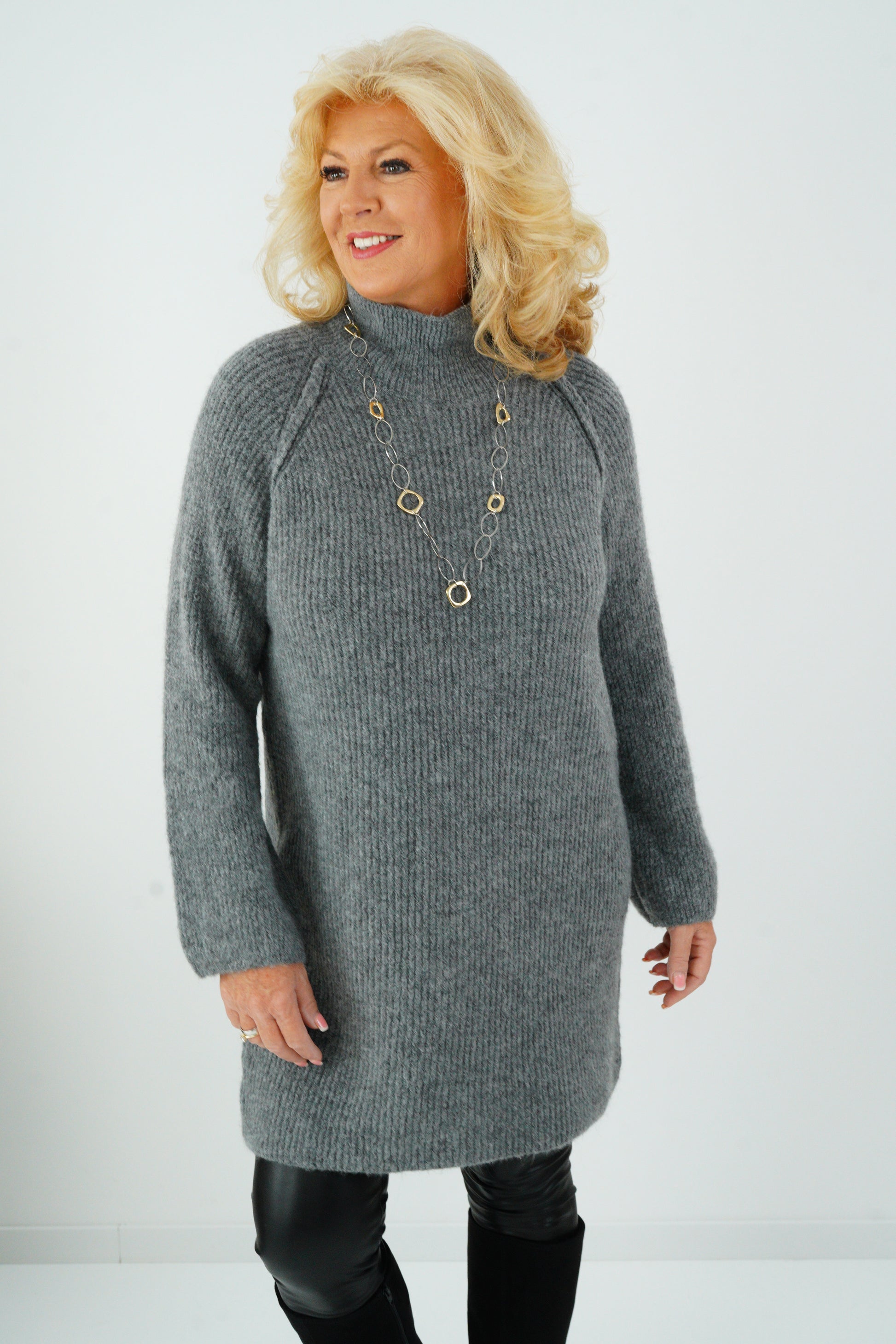Ein femininer Longpullover mit Eyecatcher-Potenzial – ideal für kühle Tage. Die Länge sorgt für einen figurschmeichelnden Fall und lässt sich wunderbar zu Leggings oder schmalen Hosen kombinieren. Perfekt für kuschelige Herbstmomente mit Stil.