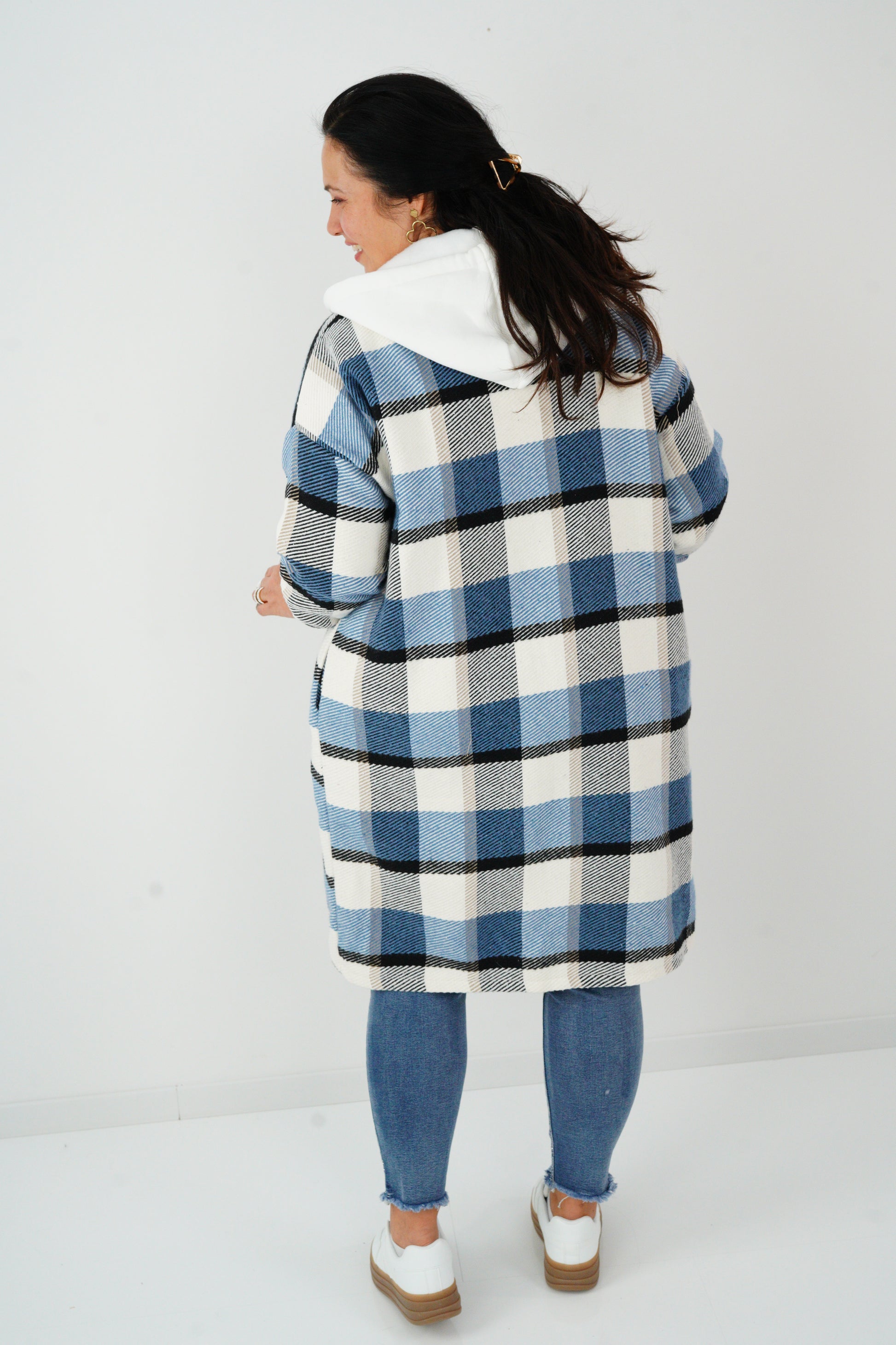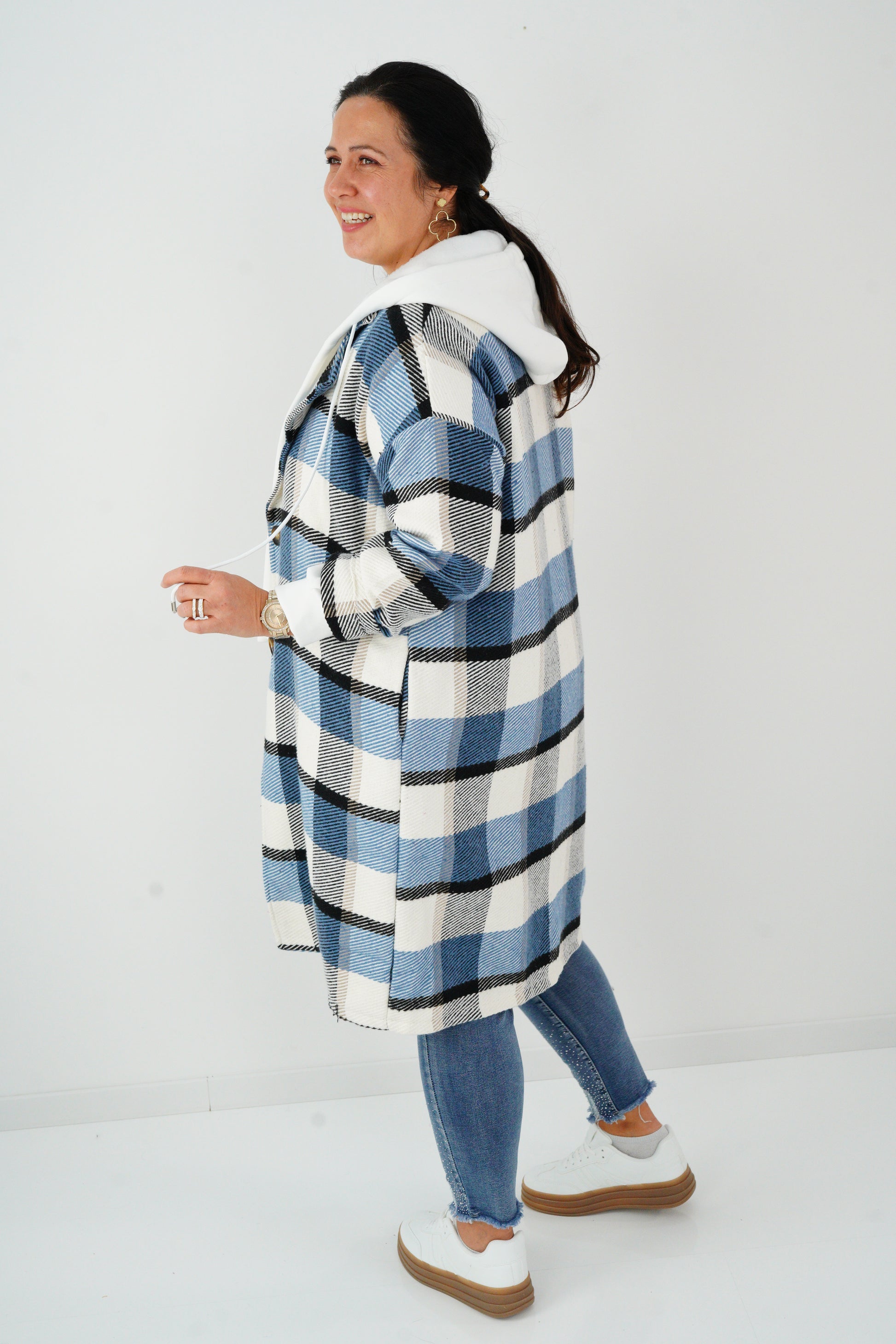 Mantel in Blau-Weiß-Schwarz-Kariert (40-44)