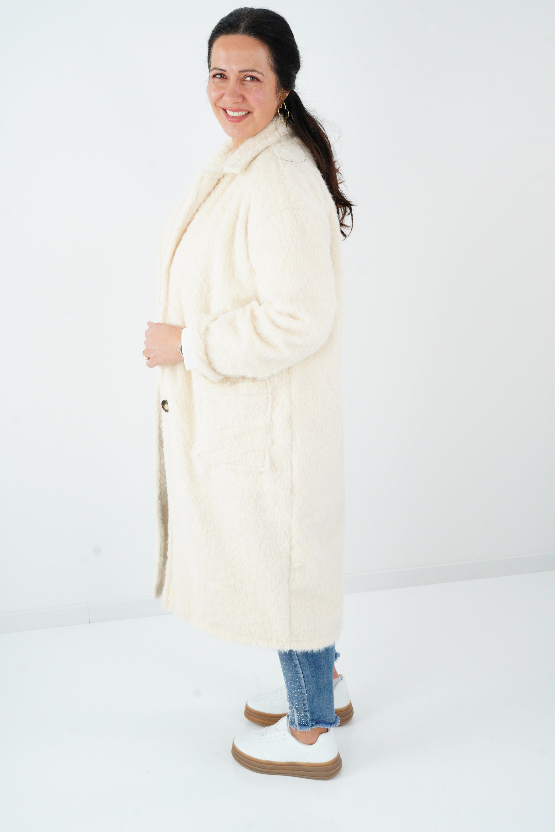 Ein Mantel mit Klasse und Leichtigkeit: Der Longmantel in zartem Butterton überzeugt durch seine schlichte Eleganz und hochwertige Verarbeitung. Der fließende Viskose-Mix trägt sich weich auf der Haut, während die aufgesetzten Taschen und der Reverskragen ihm eine klassische Note verleihen. Ideal für den Übergang – ob zum Business-Outfit oder lässig zur Jeans – dieser Mantel wertet jeden Look stilvoll auf.