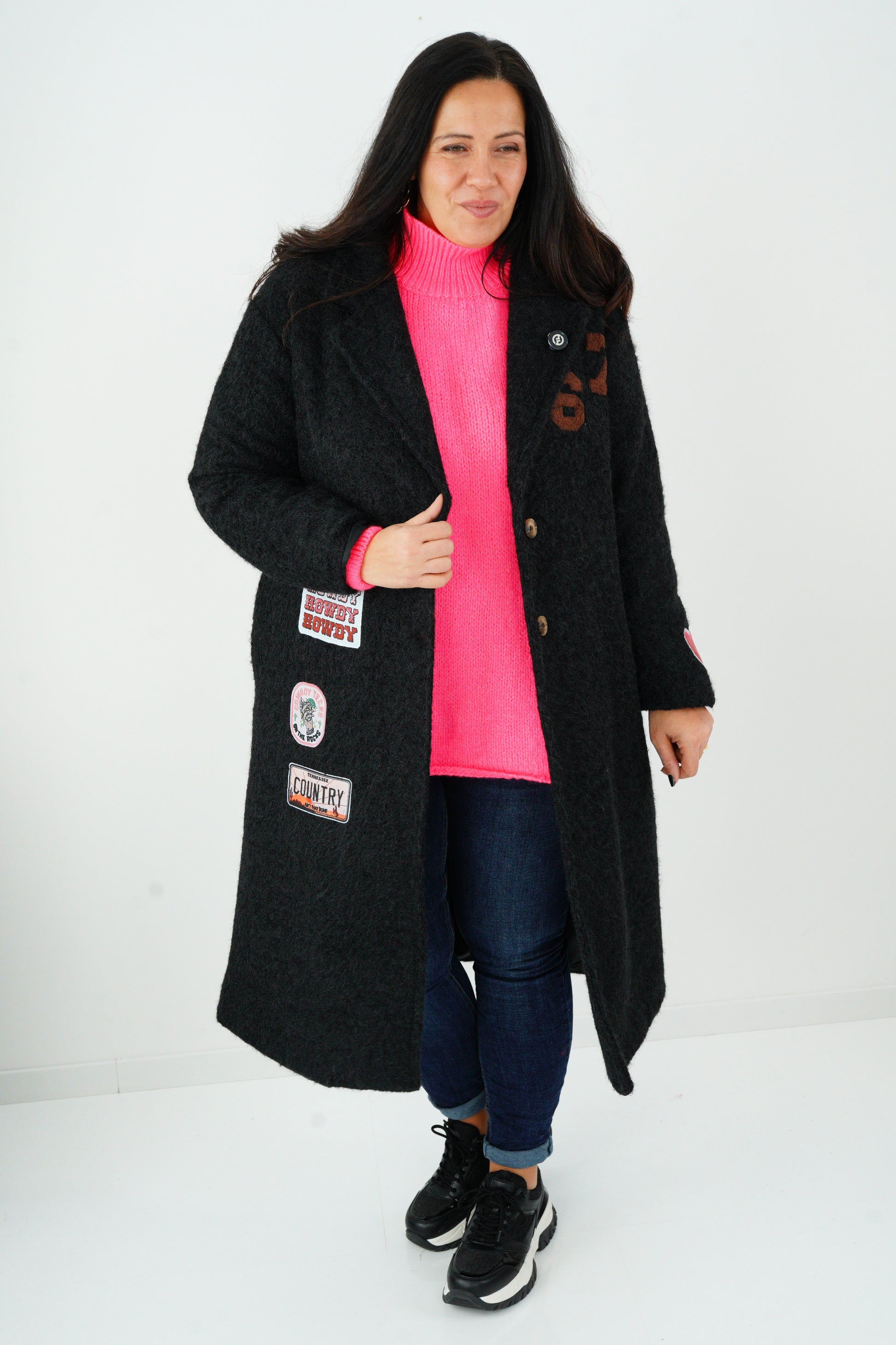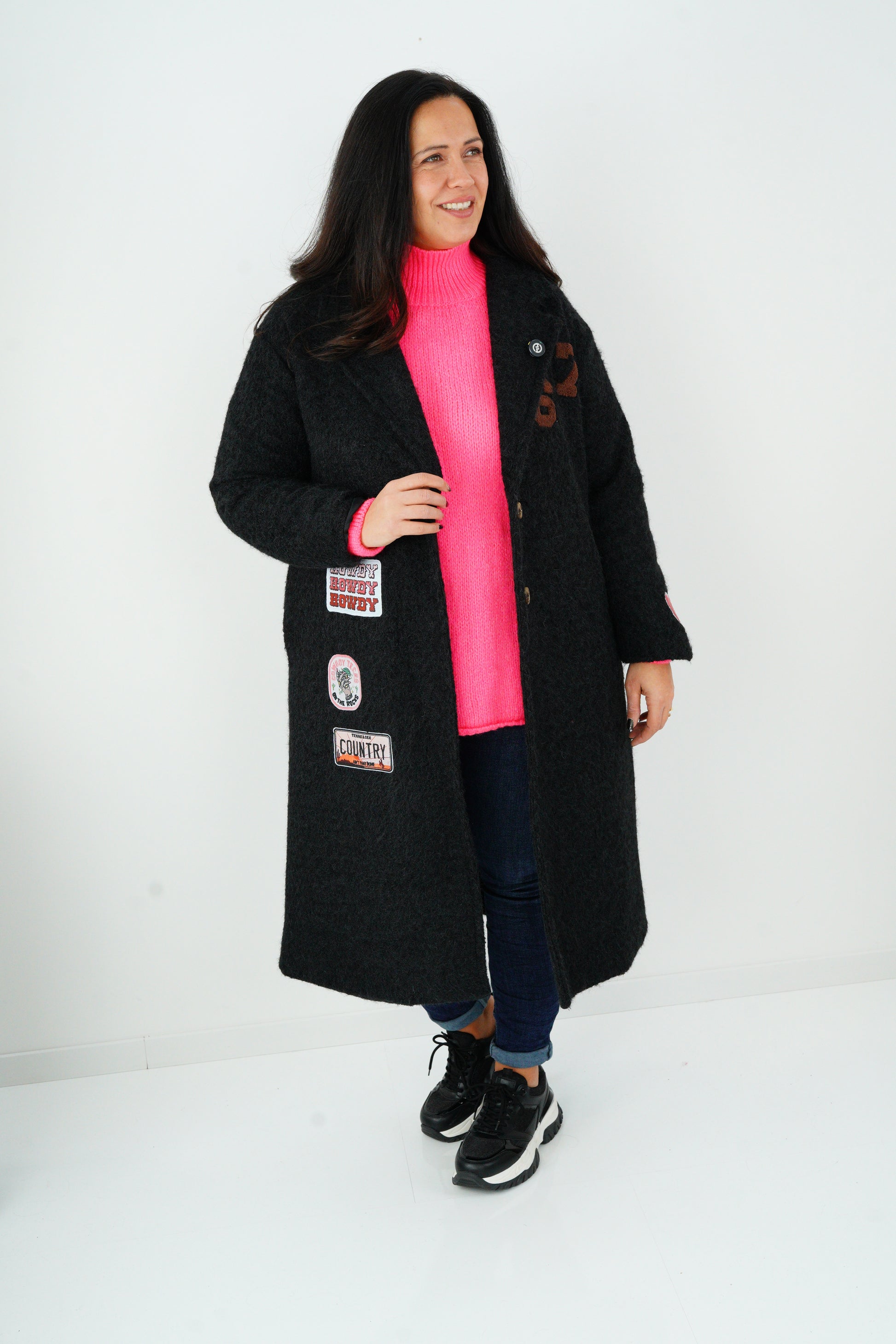 Dieser Mantel verbindet klassischen Chic mit modernem Patch-Design – ein echter Hingucker für kühle Tage! Die hochwertige Materialmischung sorgt für wohlige Wärme, während die auffälligen Details modische Statements setzen. Ideal für deinen stilvollen Herbstlook.