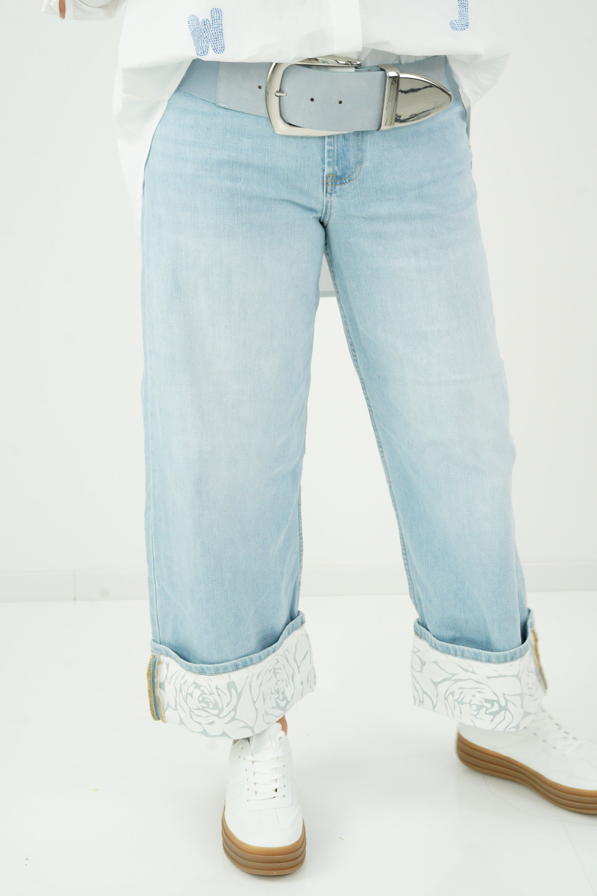 Diese Marlene Jeans setzt ein Statement – verspielt und stilvoll zugleich. Der edle Spitzenbesatz auf robustem Jeansstoff macht sie zu einem echten Eyecatcher. Die ausgestellte Form schmeichelt der Figur und lässt sich wunderbar mit Blusen, Shirts oder Blazern kombinieren – ob casual oder elegant getragen. Ein Must-Have für alle, die Mode lieben und Details schätzen.