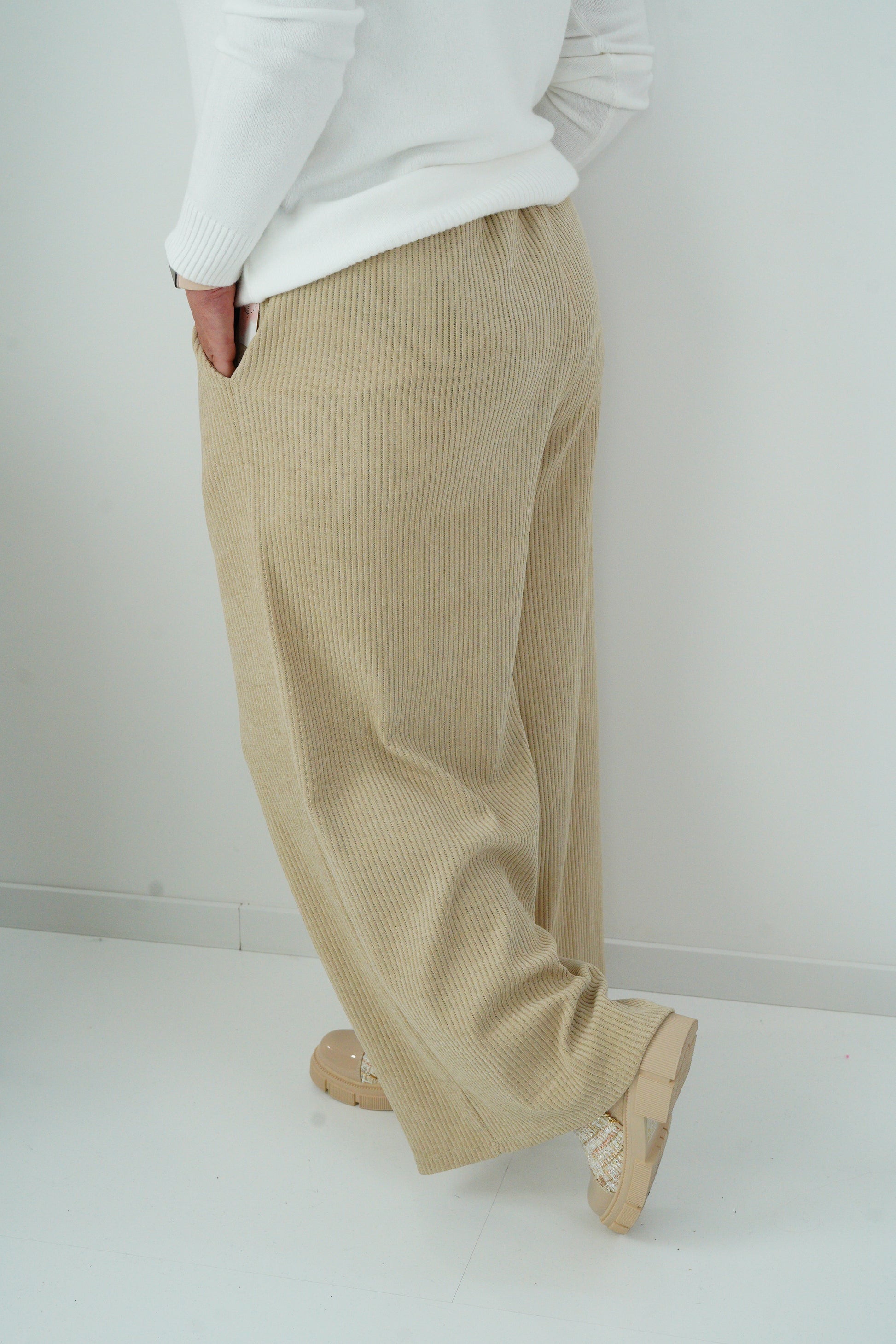 Diese Marlenehose kombiniert klassischen Chic mit angenehmem Tragekomfort. Die Cordoptik verleiht ihr Struktur, der elastische Bund sorgt für Bequemlichkeit – ein echtes Lieblingsstück für stilvolle Everyday-Looks.