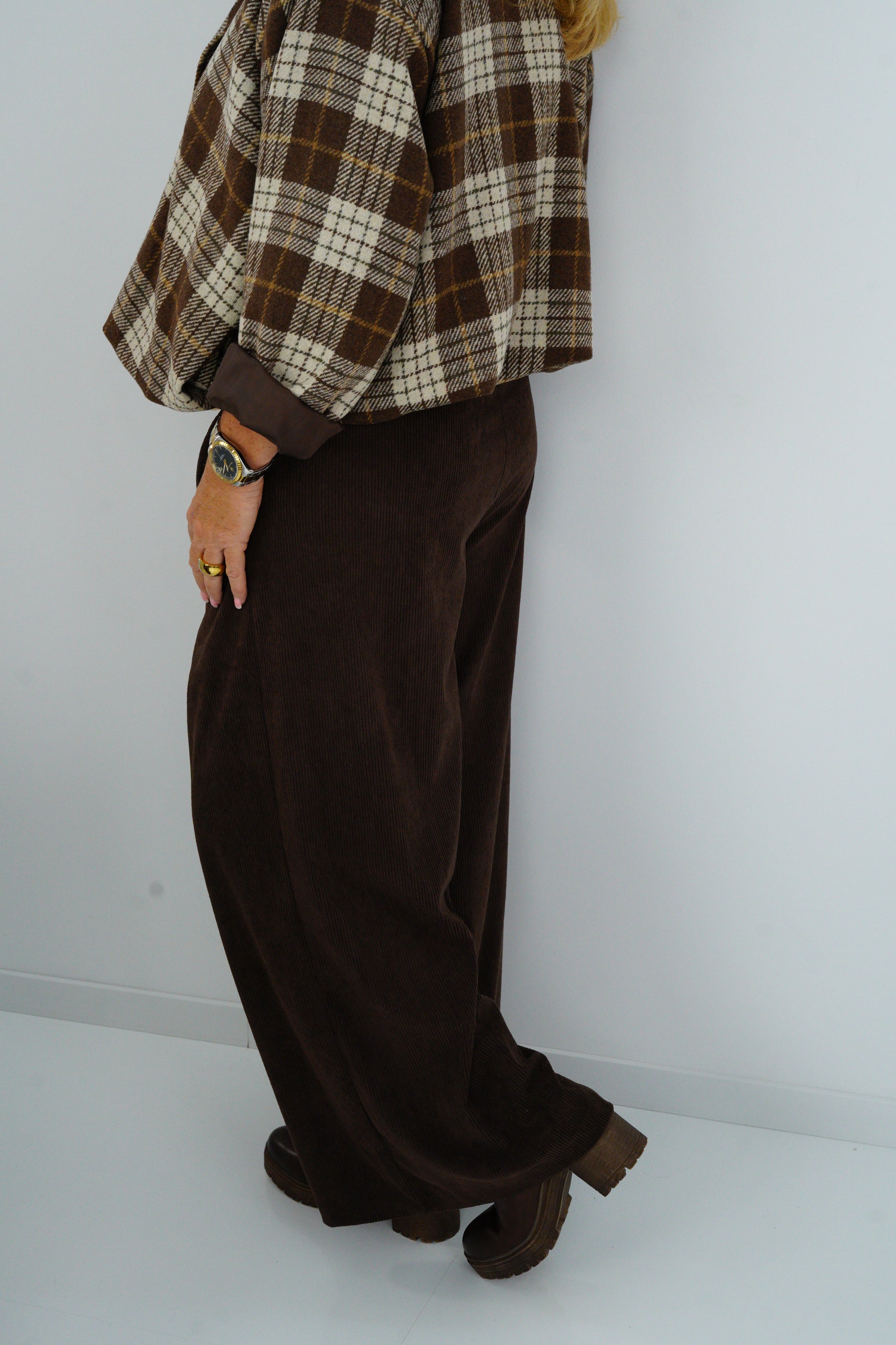 Diese moderne Cordhose kombiniert Komfort mit Stil – perfekt für lässige Herbstlooks oder elegante Everyday-Outfits. Der weite Schnitt schmeichelt jeder Figur und sorgt für eine stylische Silhouette.