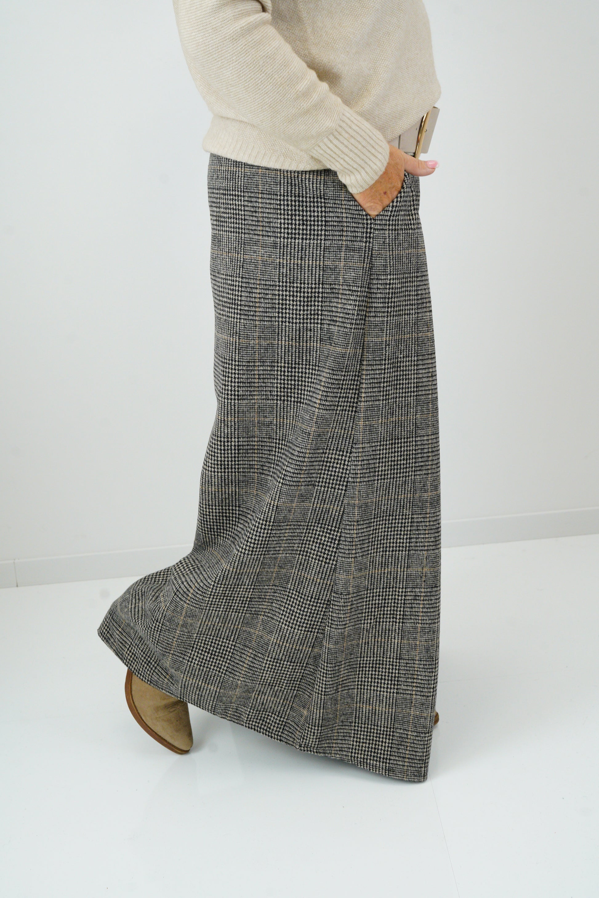 Palazzo Hose mit Glencheck in Schwarz mit Beige (36-40)