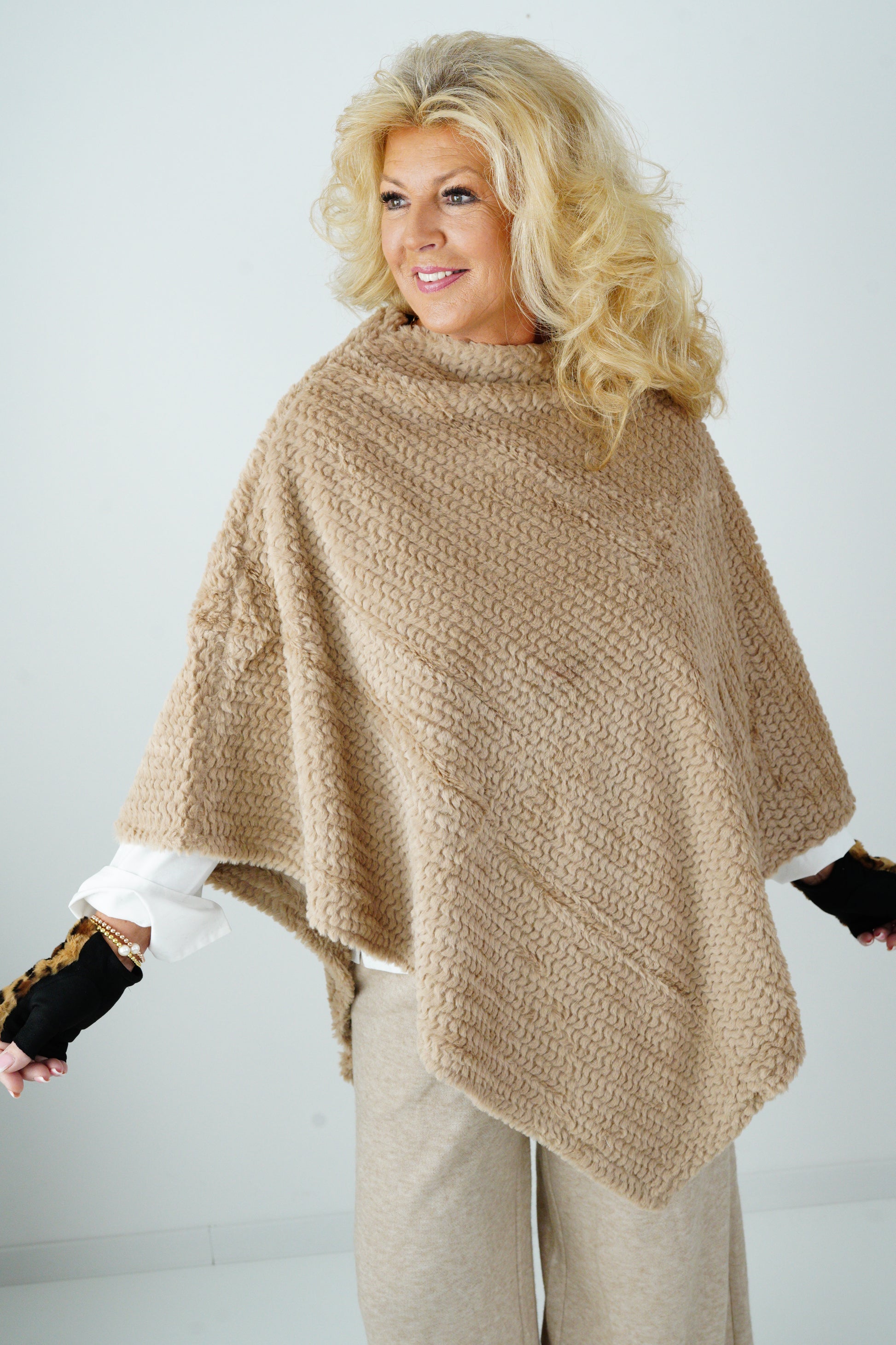 Ein femininer und weicher Poncho für gemütliche Tage – schnell übergeworfen und sofort stilvoll angezogen. Ideal für Layering-Looks in der Übergangszeit.