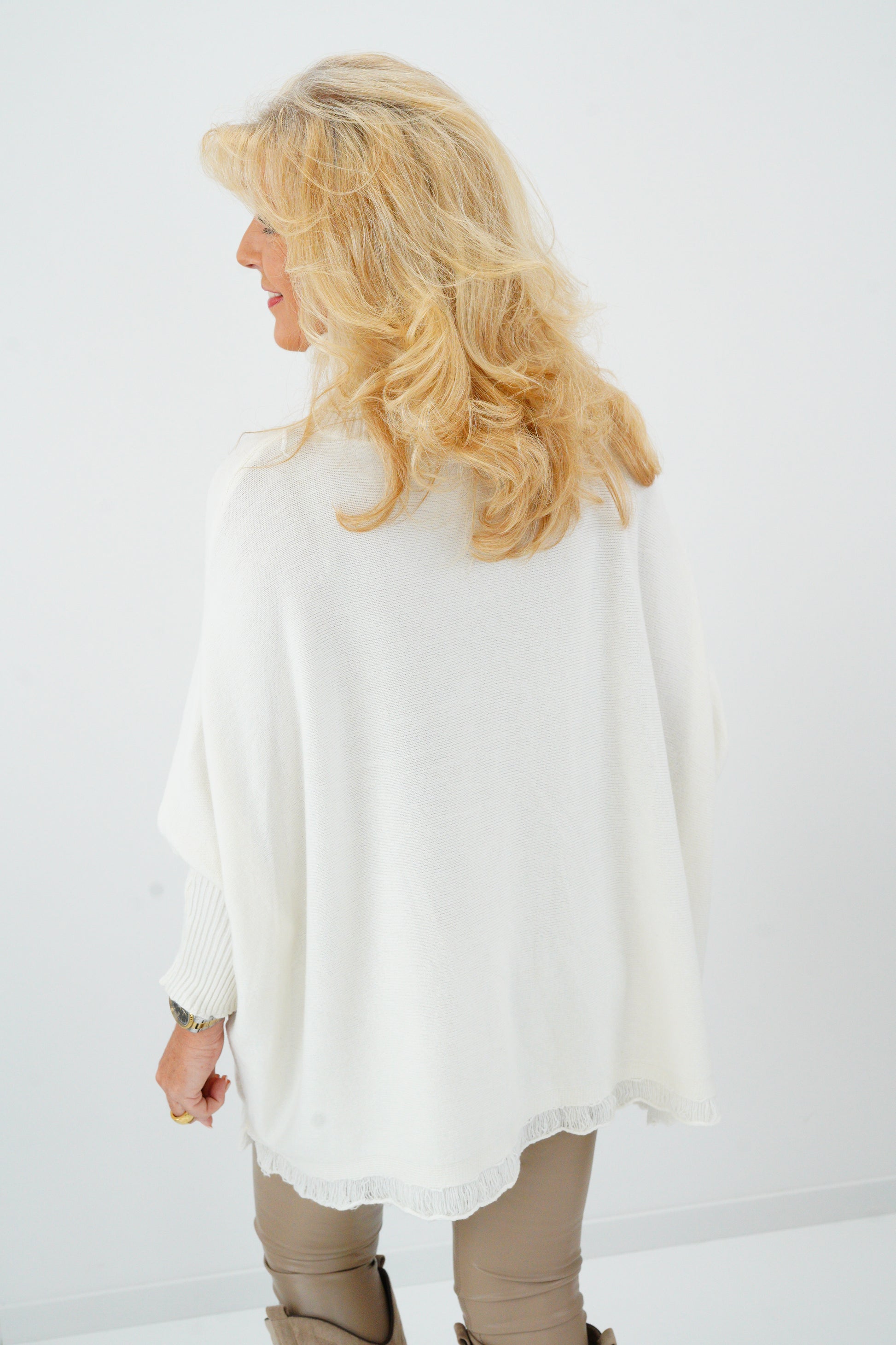 Der Pullover in Oversize-Form vereint angenehme Wärme mit lässigem Chic. Durch die feinen Details wie Rollkragen, Rippbündchen und den leicht ausgefransten Look entsteht ein modisches Highlight für gemütliche und stilvolle Herbst- und Winter-Outfits.
