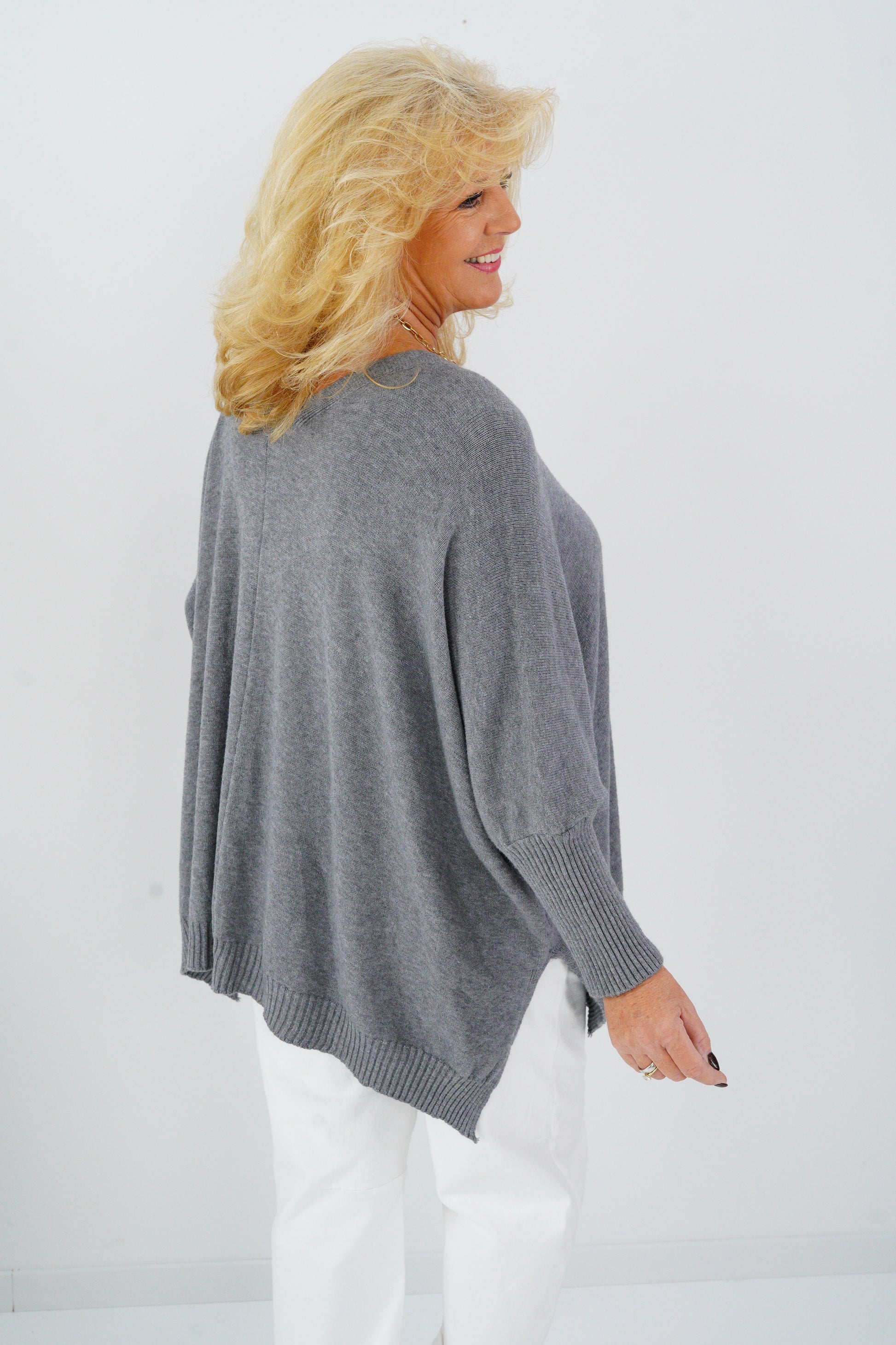 Ein lässiger Oversize-Pullover mit femininen Details. Die Knopfleiste und die seitlichen Schlitze machen ihn zum wandelbaren Lieblingsstück – perfekt für entspannte Looks mit Stil.