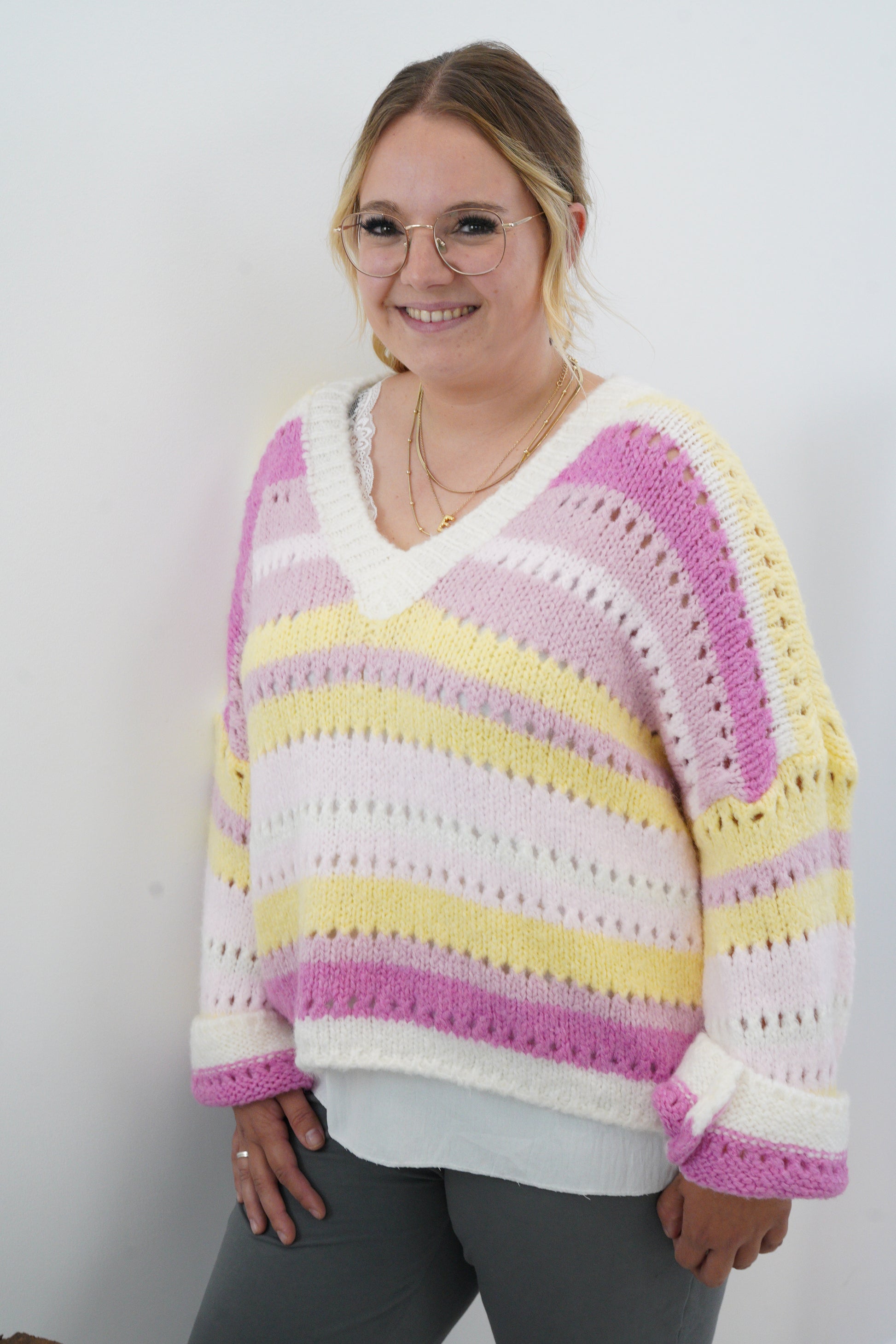 Pullover in Rosa-Gelb-Bunt (38–44)
