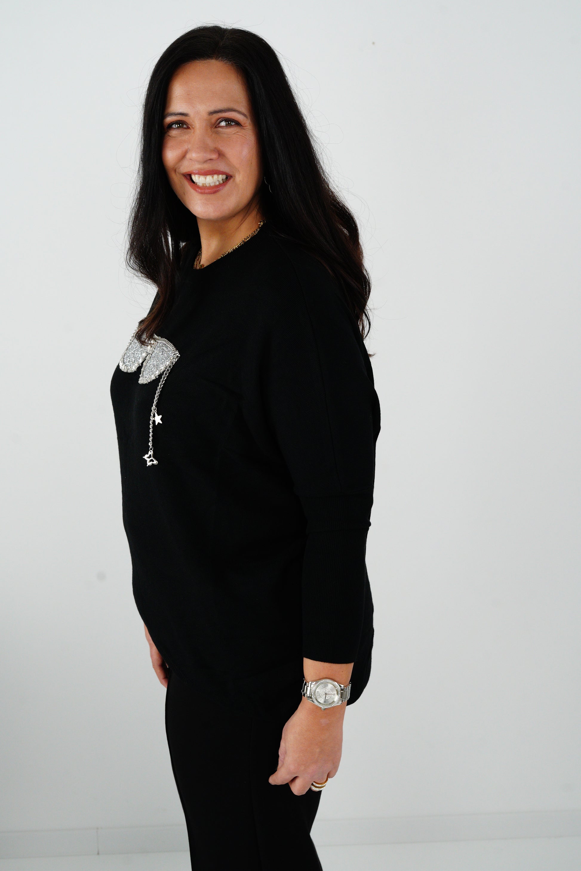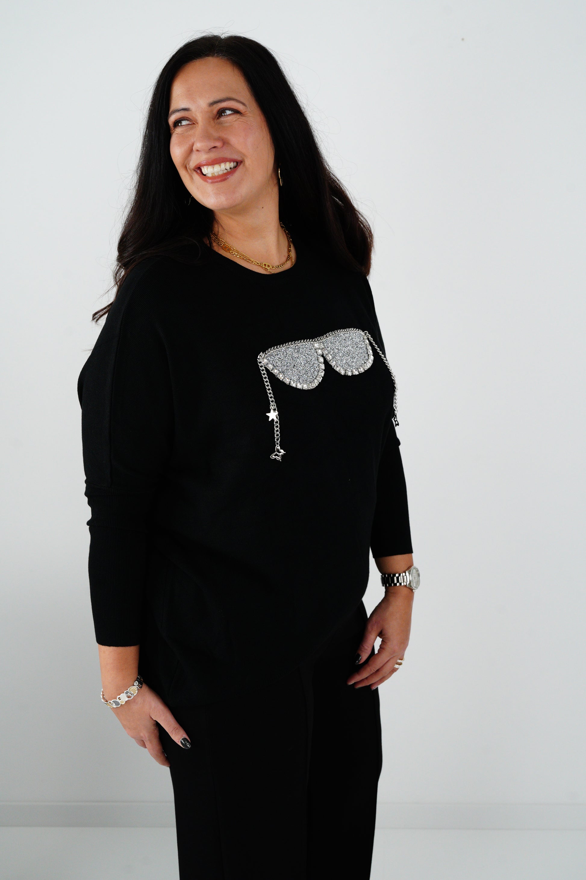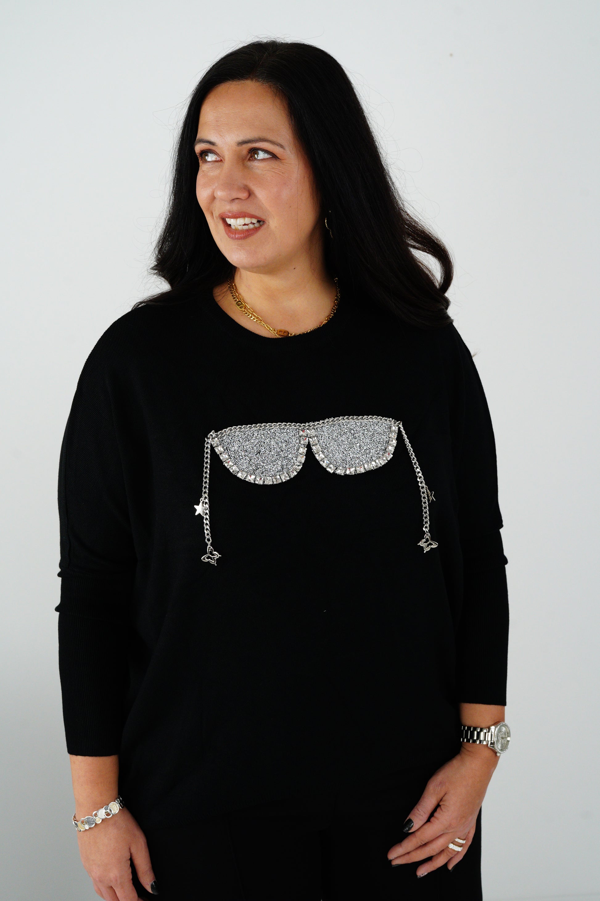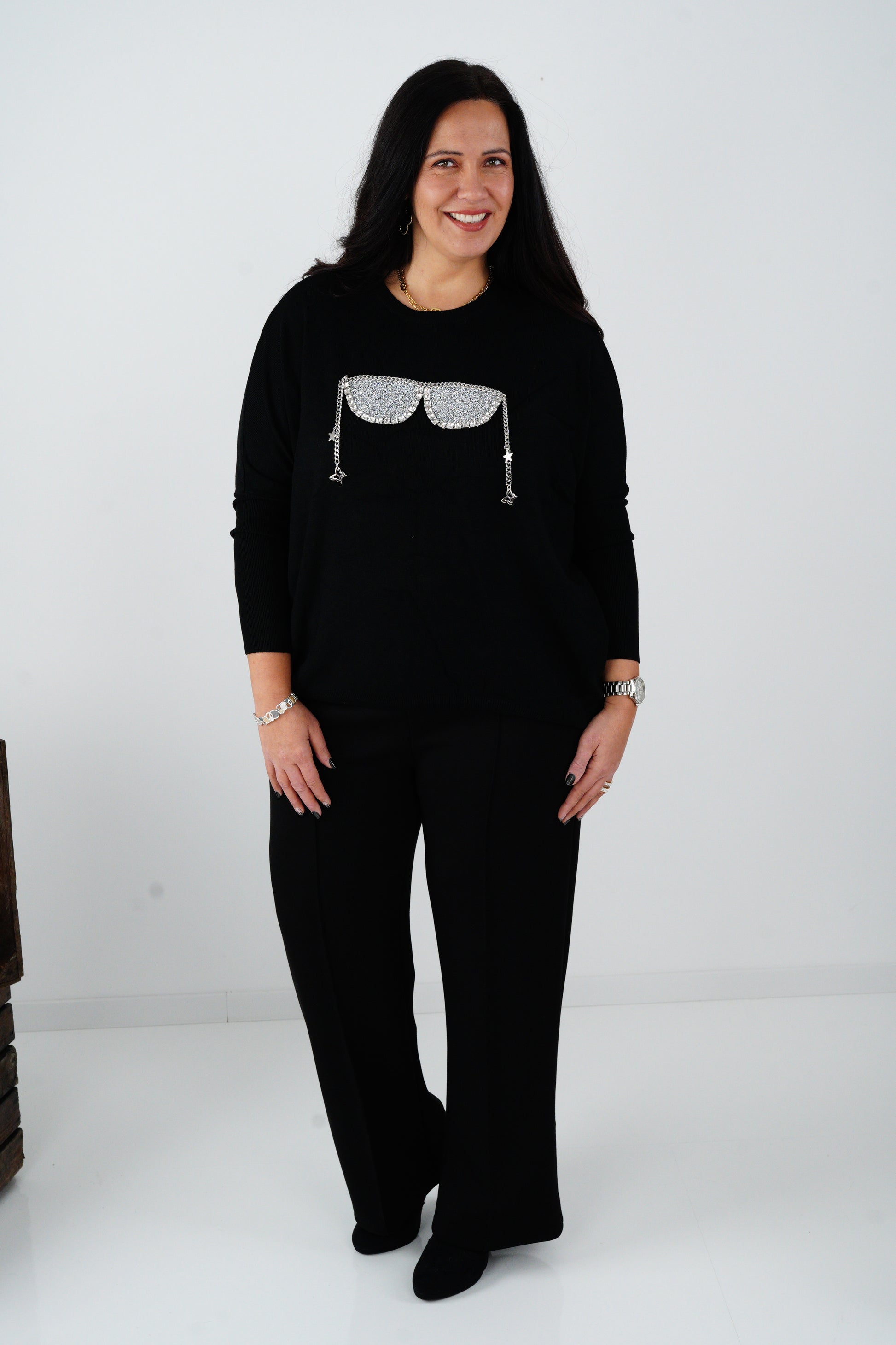 Ein Pullover, der mit Glamour überzeugt! Die funkelnden Details machen ihn zu einem echten Hingucker – perfekt für besondere Anlässe oder als modisches Highlight im Alltag. Bequem, elegant & auffällig!