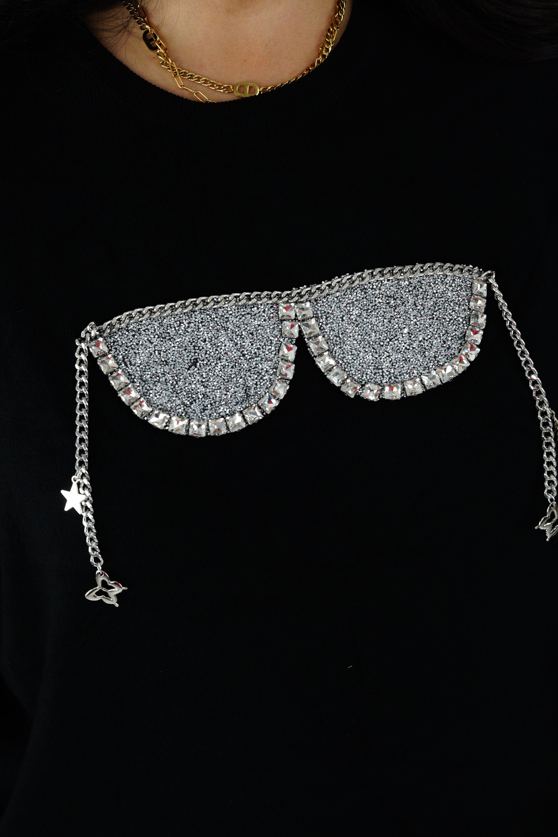 Großer Strassprint mit dekorativer Kette auf der Vorderseite