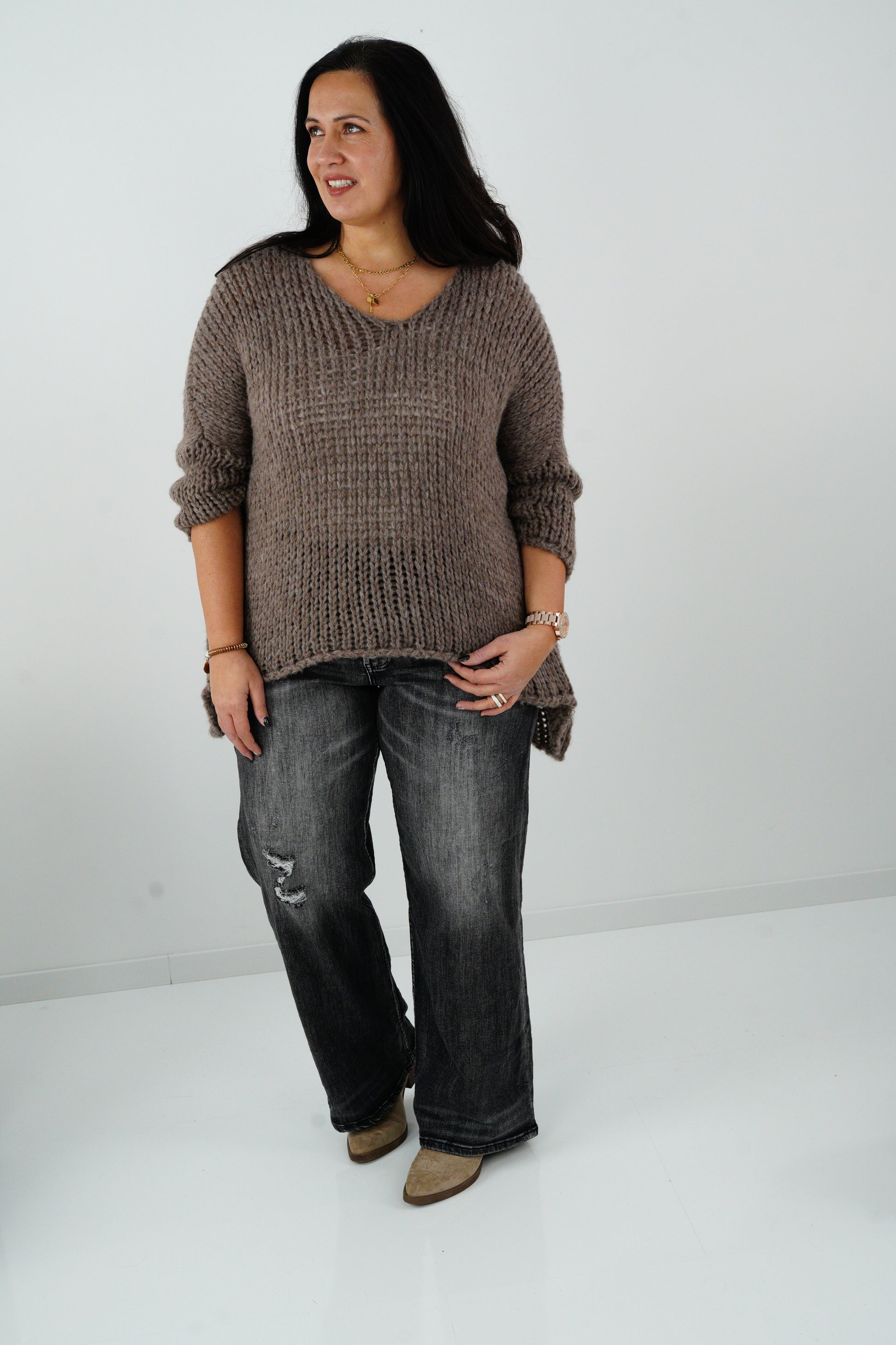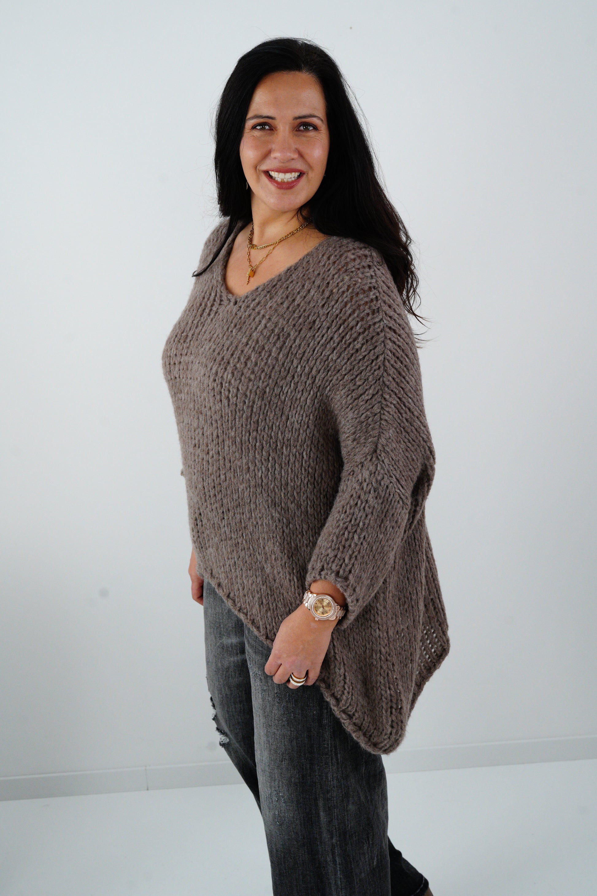 Der ideale Pullover für alle, die es bequem und stylisch mögen. Der weiche Grobstrick, der schmeichelhafte V-Ausschnitt und die lässige Schnittführung machen ihn zu einem absoluten Alltagsliebling mit modischem Twist.