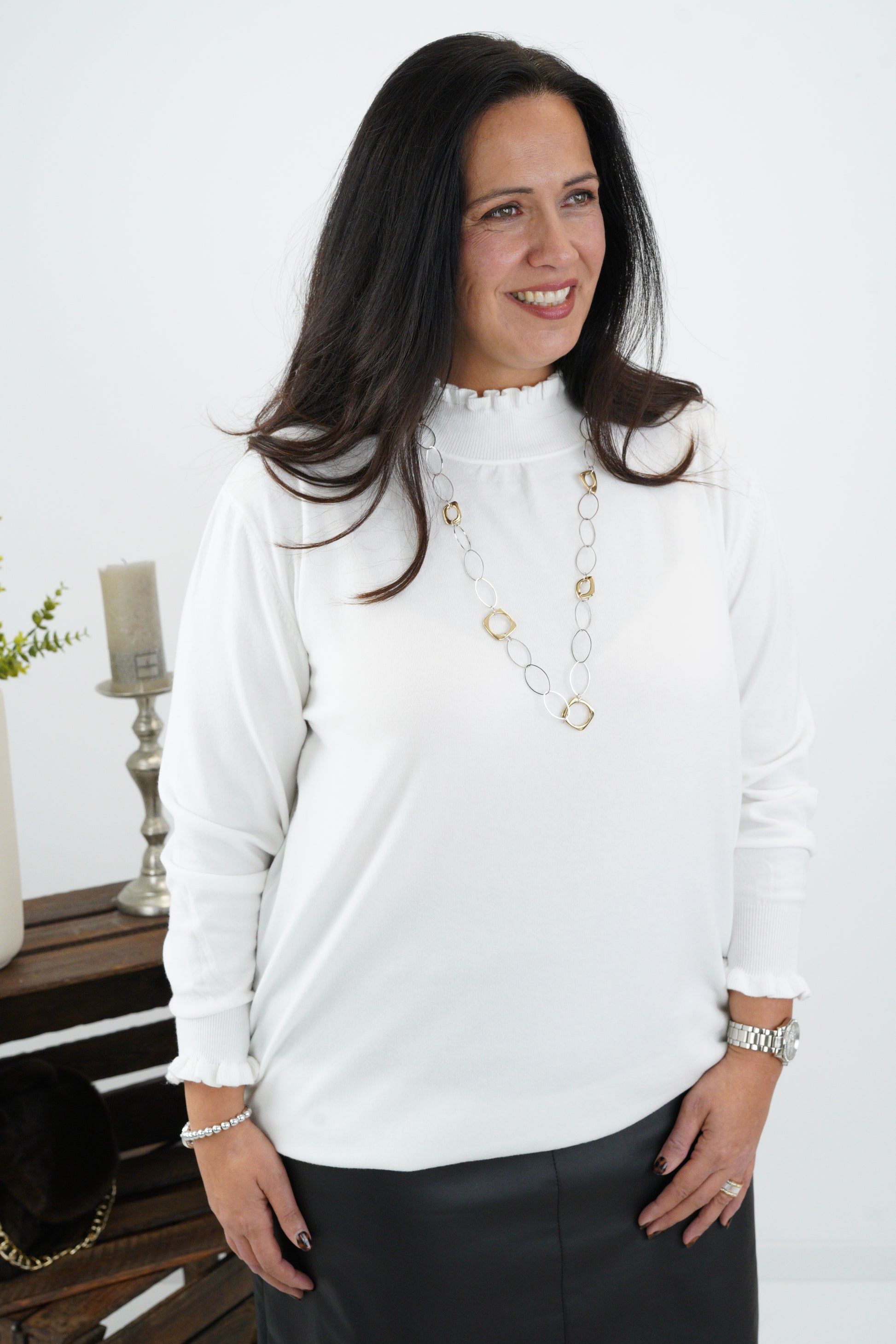 Leichter Pullover mit elegantem Rüschen-Stehkragen