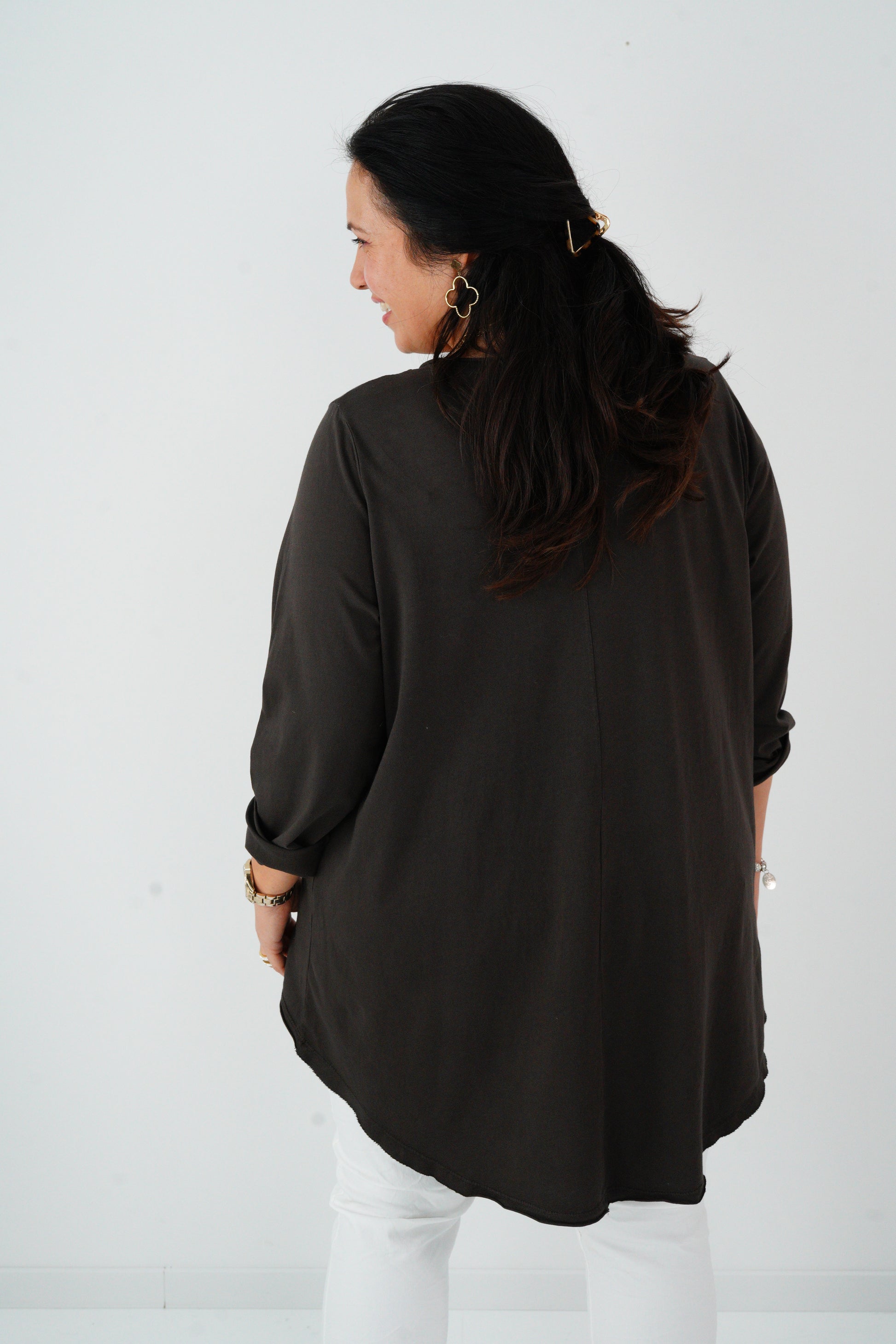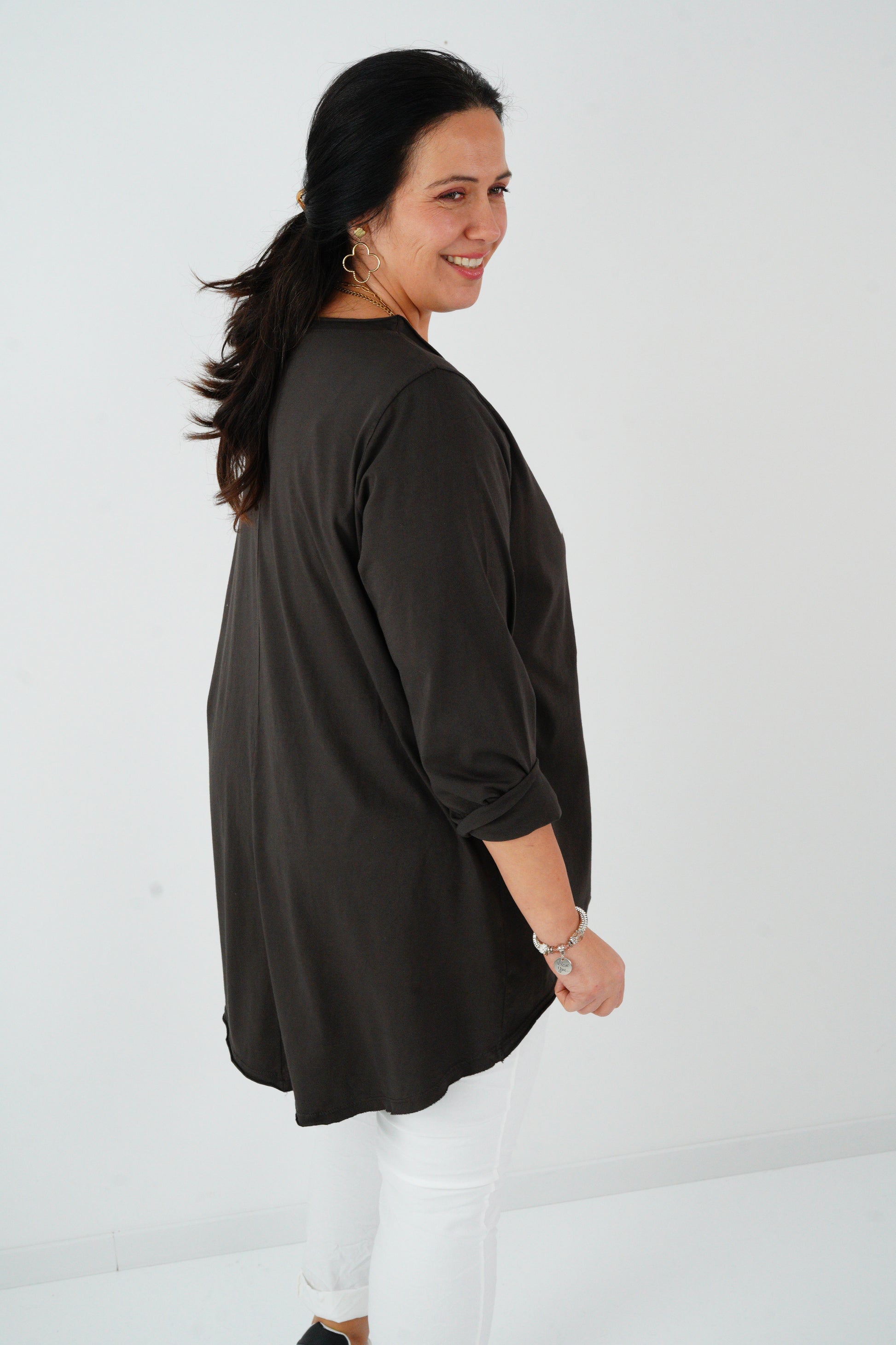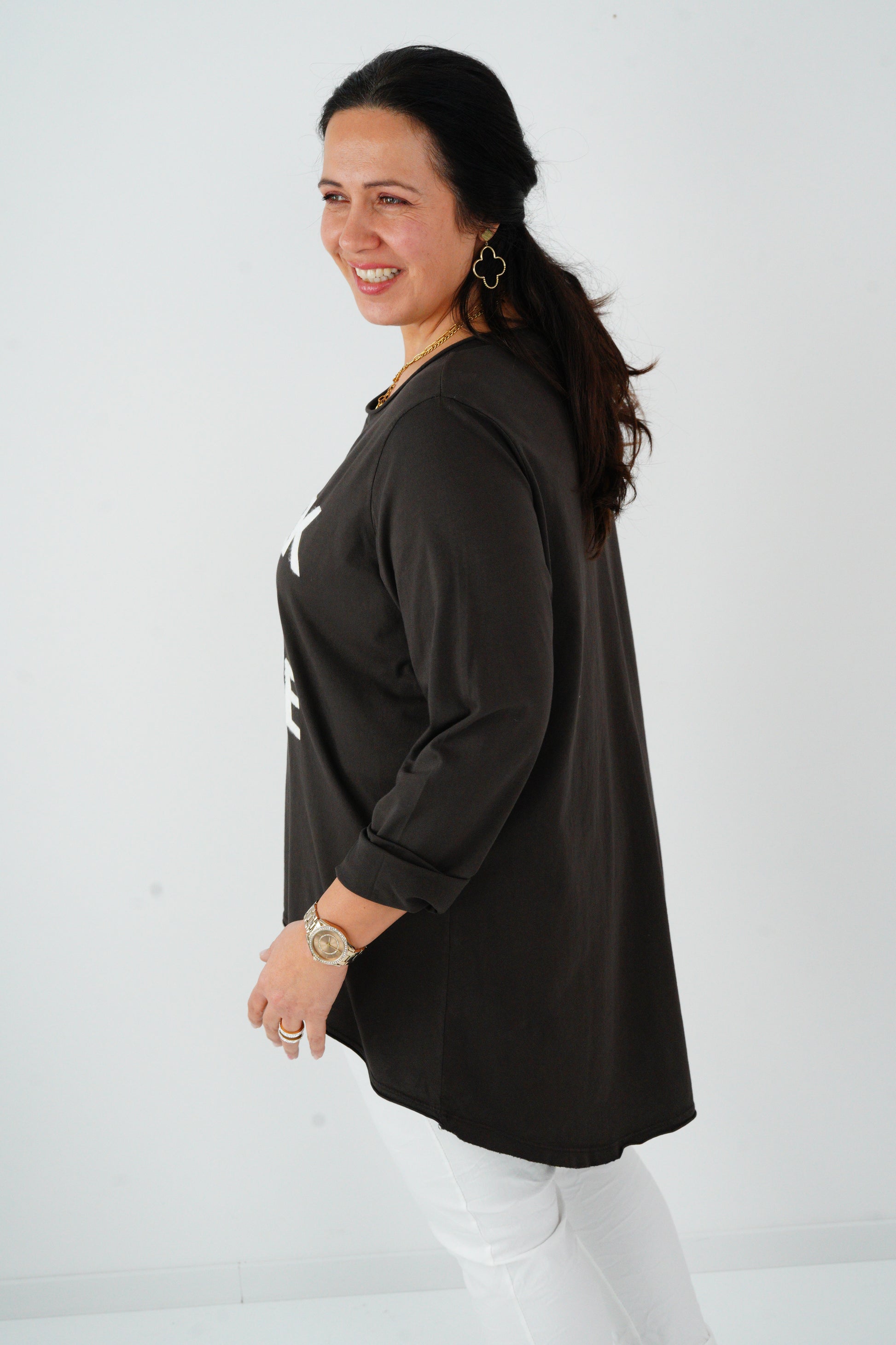 Shirt in Schoko mit Print „Rock&Roll“ (Gr. 40–44+)