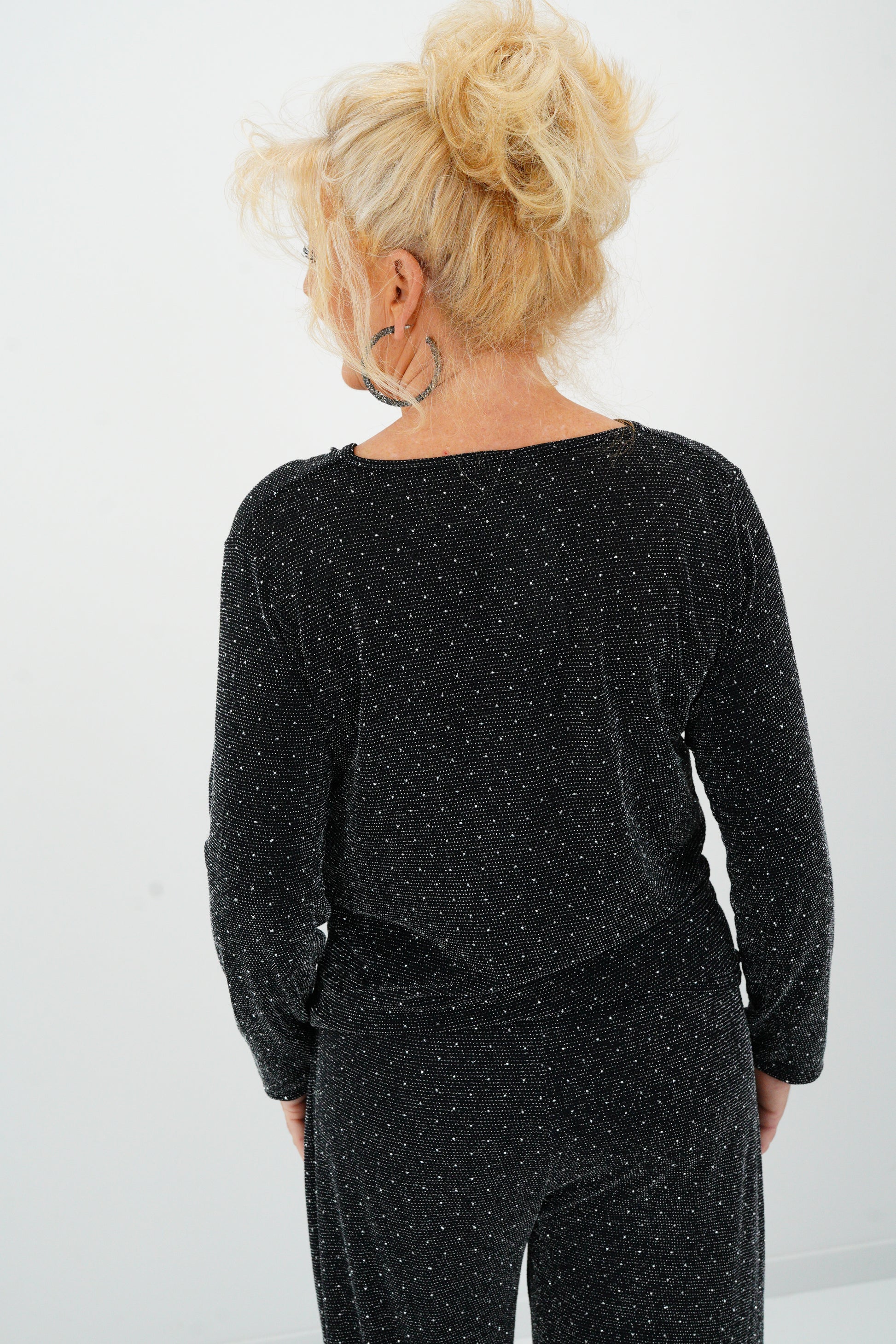 Shirt in Schwarz mit Zierschnalle & Glitzer (Gr. 38–42+)