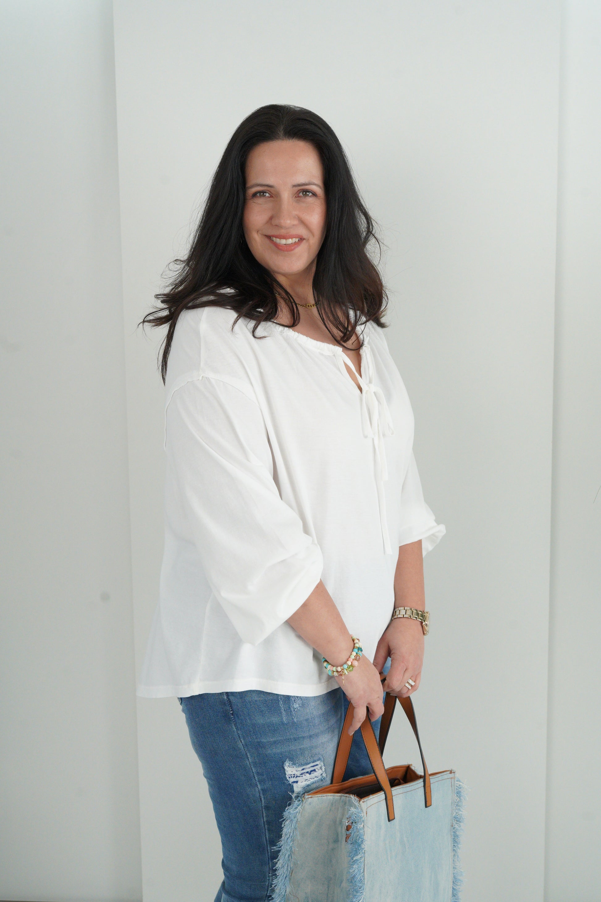 Dank des angenehmen Baumwollmixes mit Stretch-Anteil bietet das Shirt einen hohen Tragekomfort und eine lockere Passform. Die etwas längere Rückenpartie sorgt für einen schönen Fall und eine schmeichelnde Silhouette. Durch den variablen Ausschnitt und das zeitlose Design lässt sich dieses Modell vielseitig kombinieren – ob lässig zu Jeans oder stilvoll zu Stoffhosen und Röcken. ✨