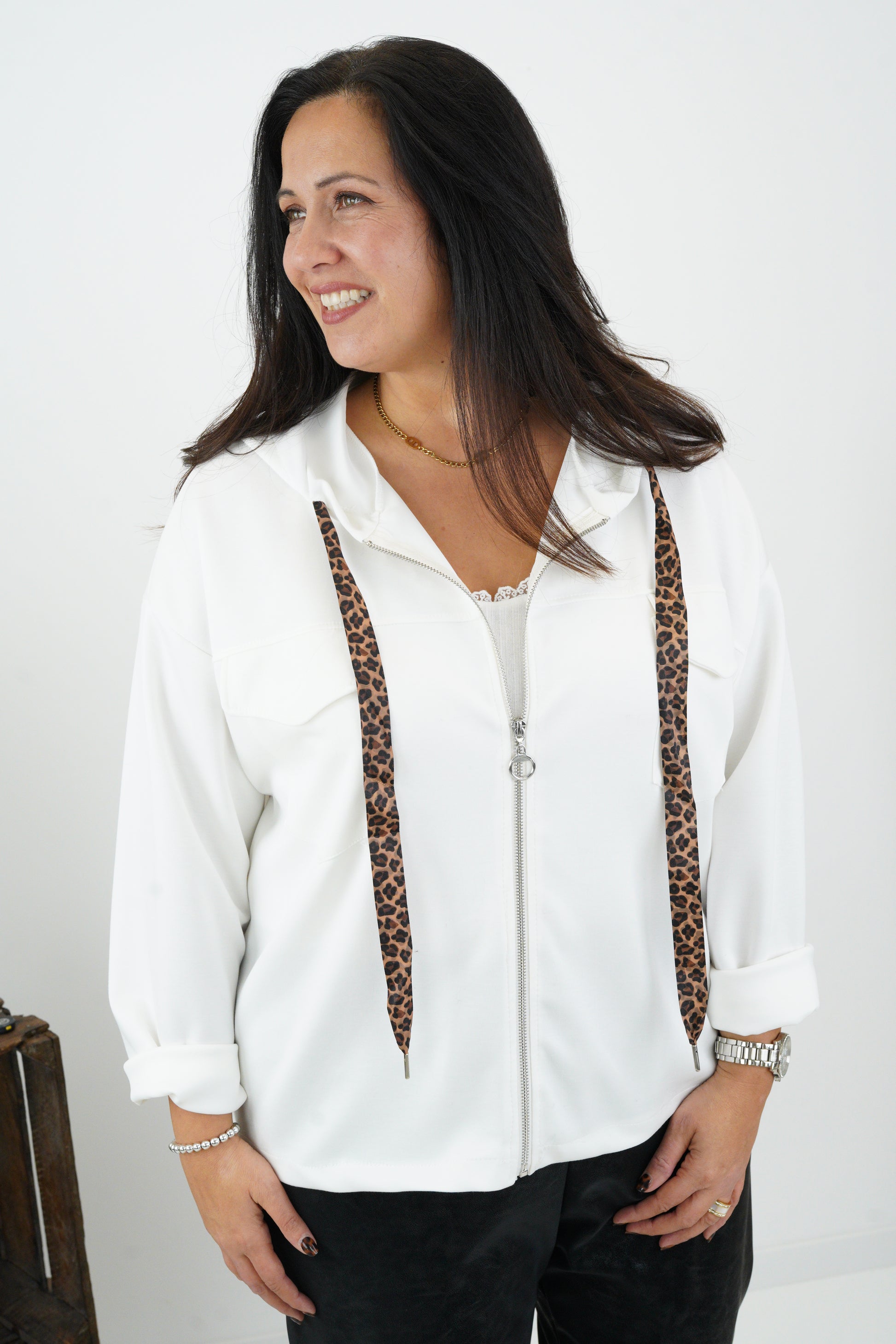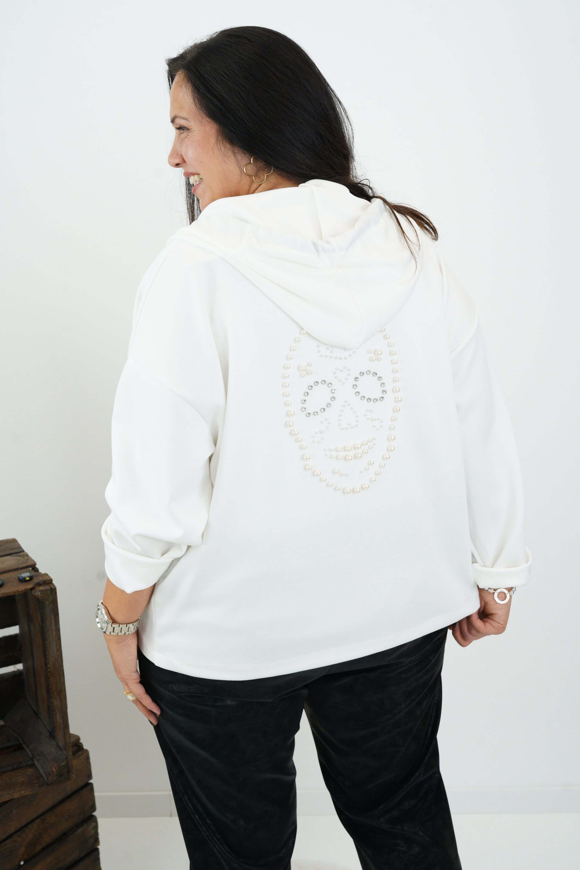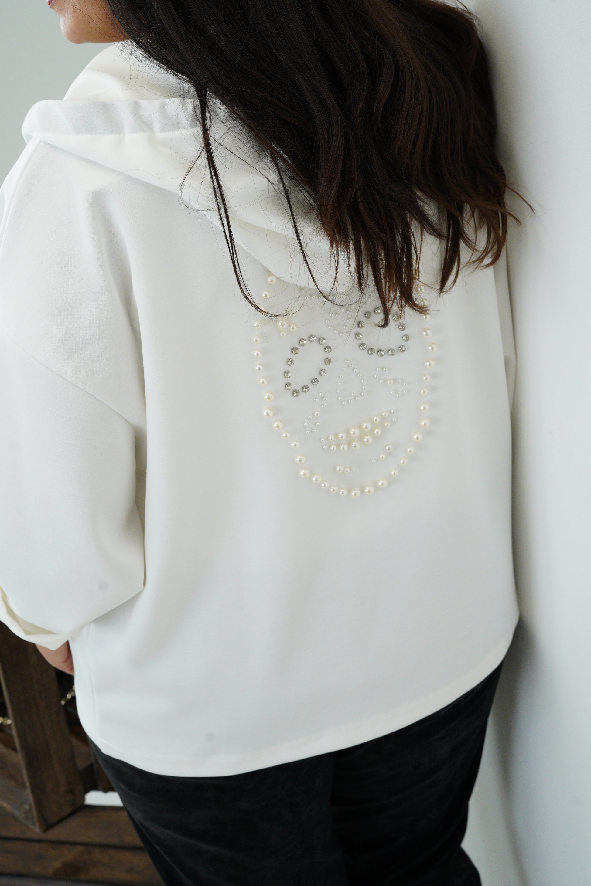 Diese Sweatjacke verbindet Komfort mit rockigem Chic! Das softe Material schmiegt sich angenehm an, während die funkelnden Details auf dem Rücken jedem Look das gewisse Etwas verleihen. Ideal für alle, die es sportlich-lässig mit einer Portion Glam mögen.