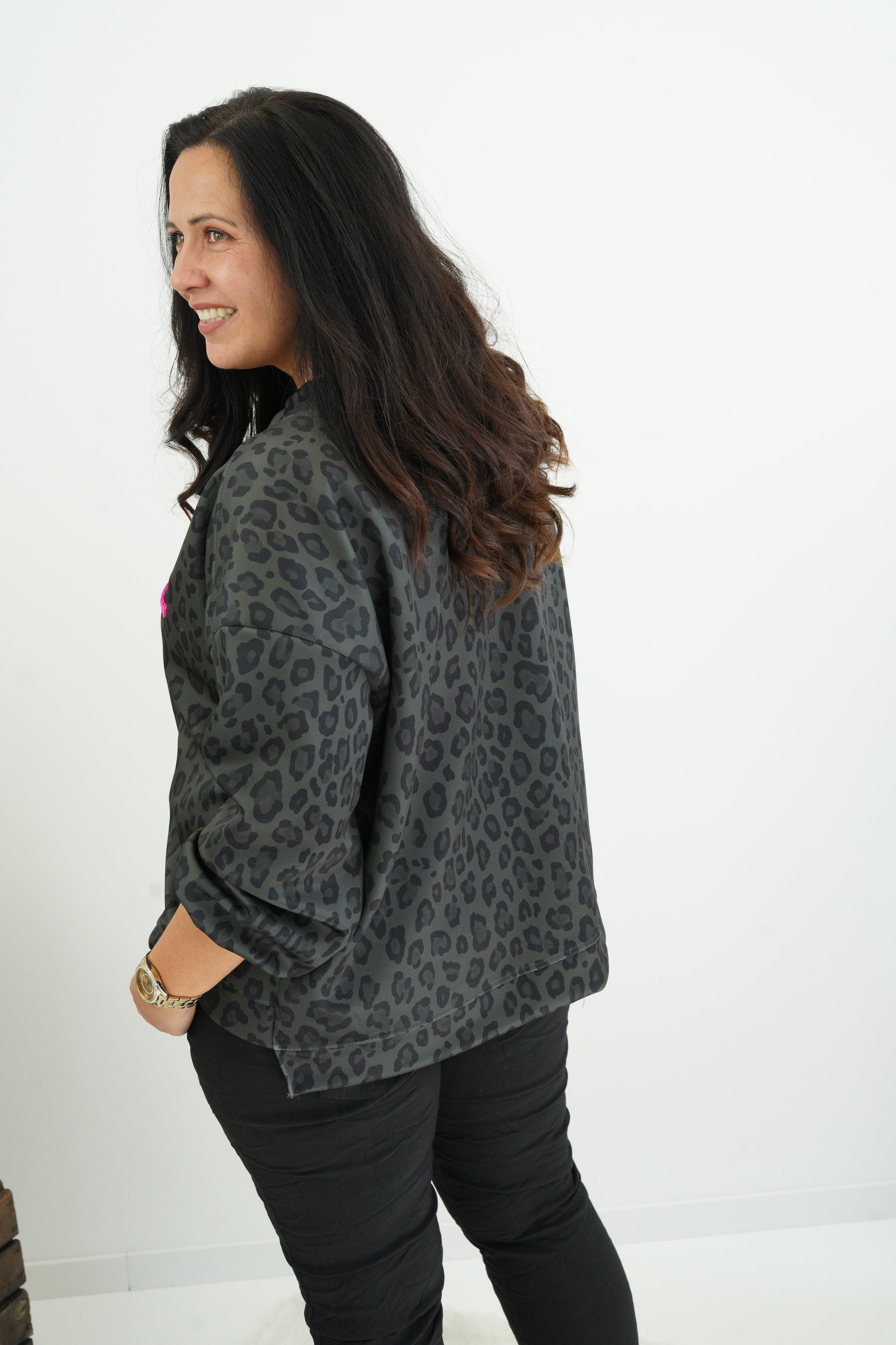 Ein Sweatshirt mit Wow-Effekt: Das Zusammenspiel von Khaki und Neonpink sorgt für einen trendigen Look, während der High-Low-Schnitt und die Prints modische Akzente setzen. Ideal für sportive Casual-Outfits mit stylischem Twist.