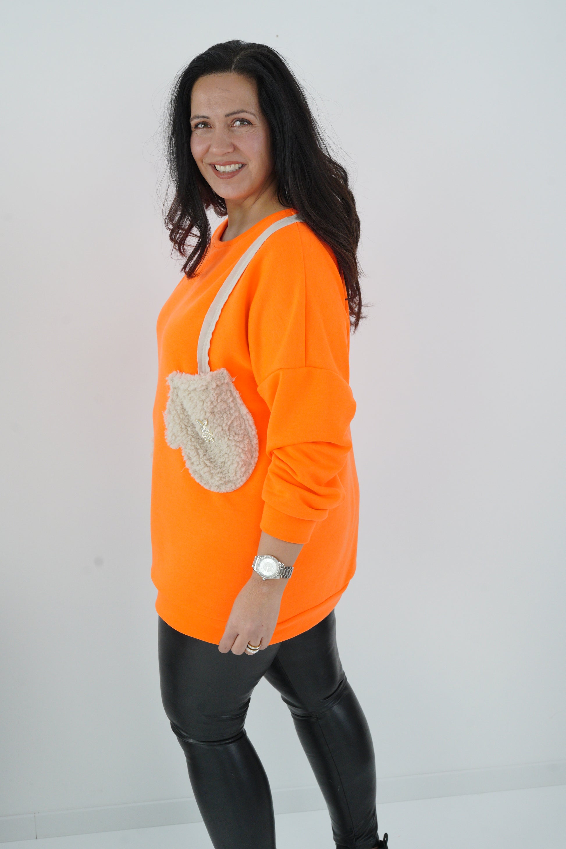 Sweatshirt in Neon-Orange mit Plüschtaschen (Gr. 38–46)