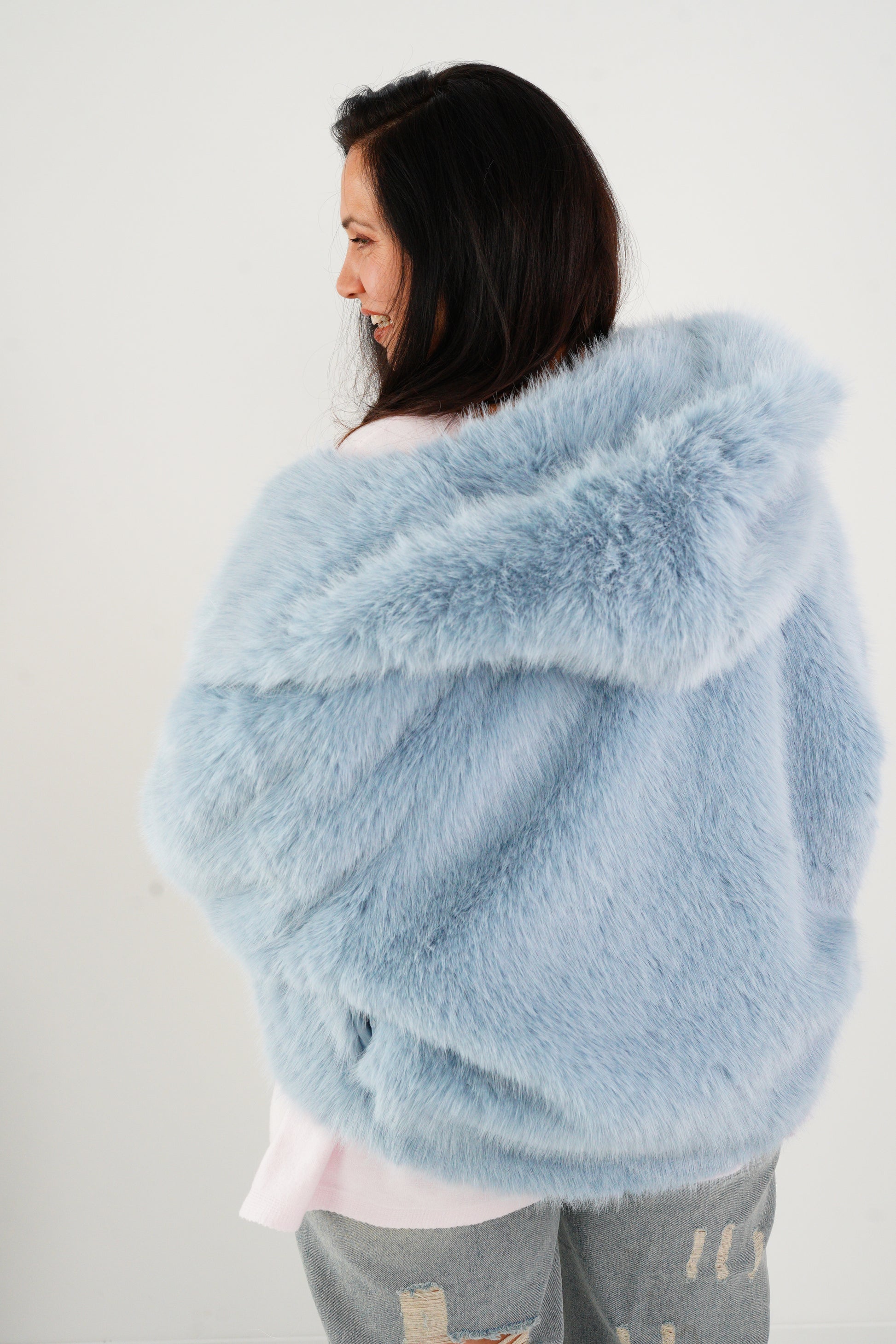 Diese Webpelz-Jacke vereint kuschelige Wärme mit stilvollem Design. Der weiche Griff, der raffinierte Kapuzenkragen und der glitzernde Verschluss machen sie zum perfekten Begleiter für elegante Alltagslooks mit Wohlfühlgarantie.