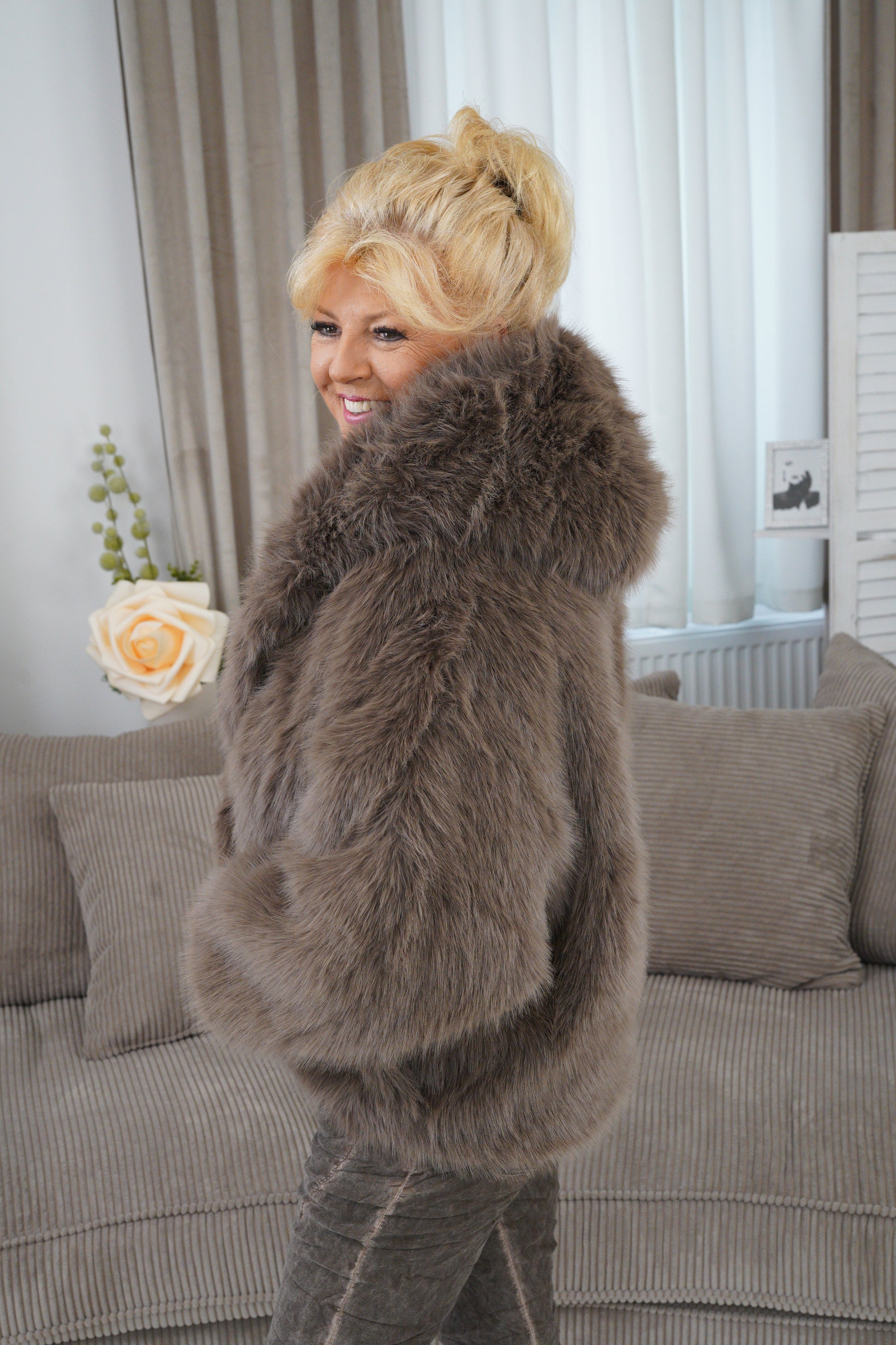 Diese Webpelz-Jacke vereint kuschelige Wärme mit stilvollem Design. Der weiche Griff, der raffinierte Kapuzenkragen und der glitzernde Verschluss machen sie zum perfekten Begleiter für elegante Alltagslooks mit Wohlfühlgarantie.