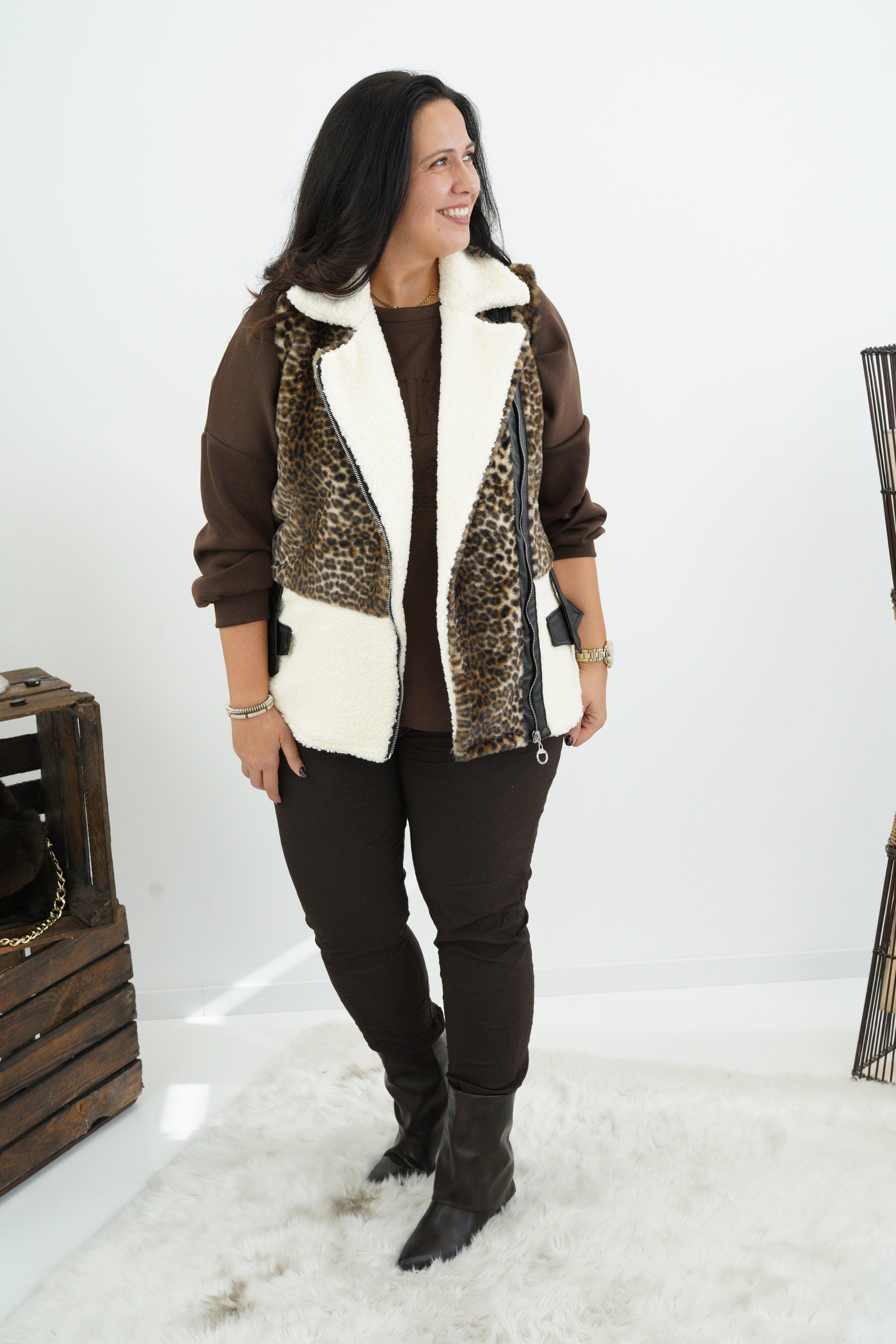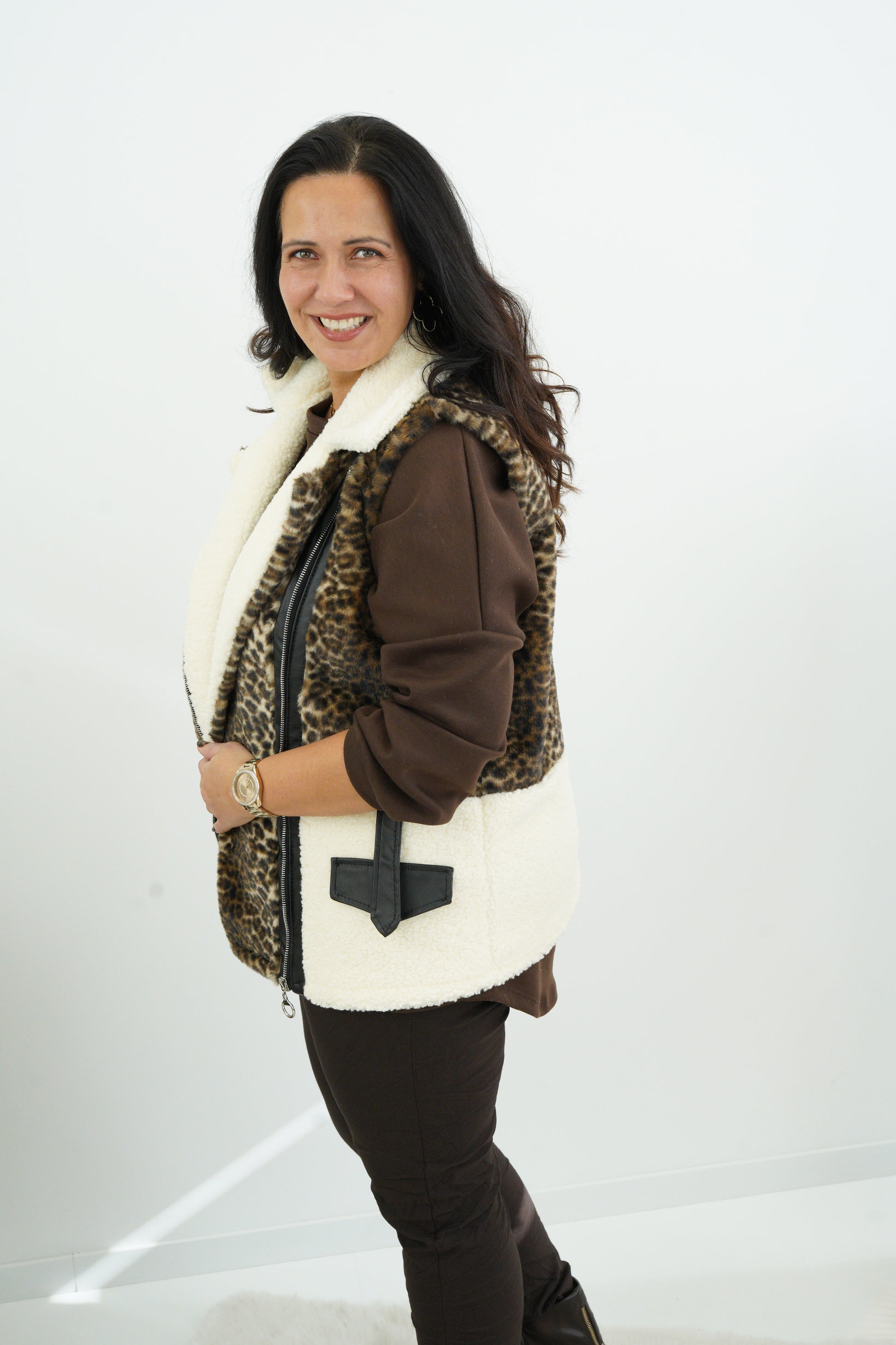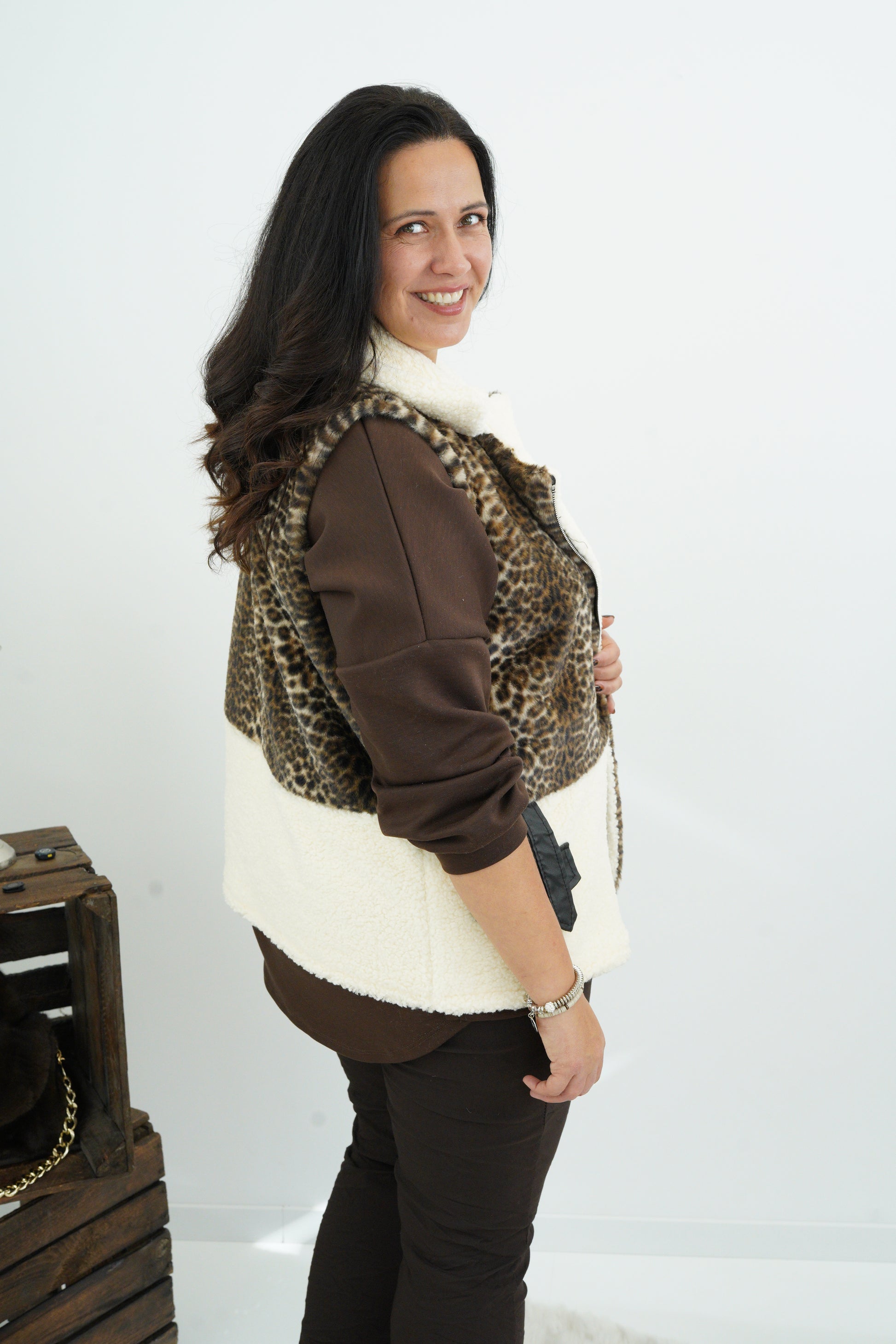 Stepp-Kurzweste in Leo-Vanille (M/L,L/XL)